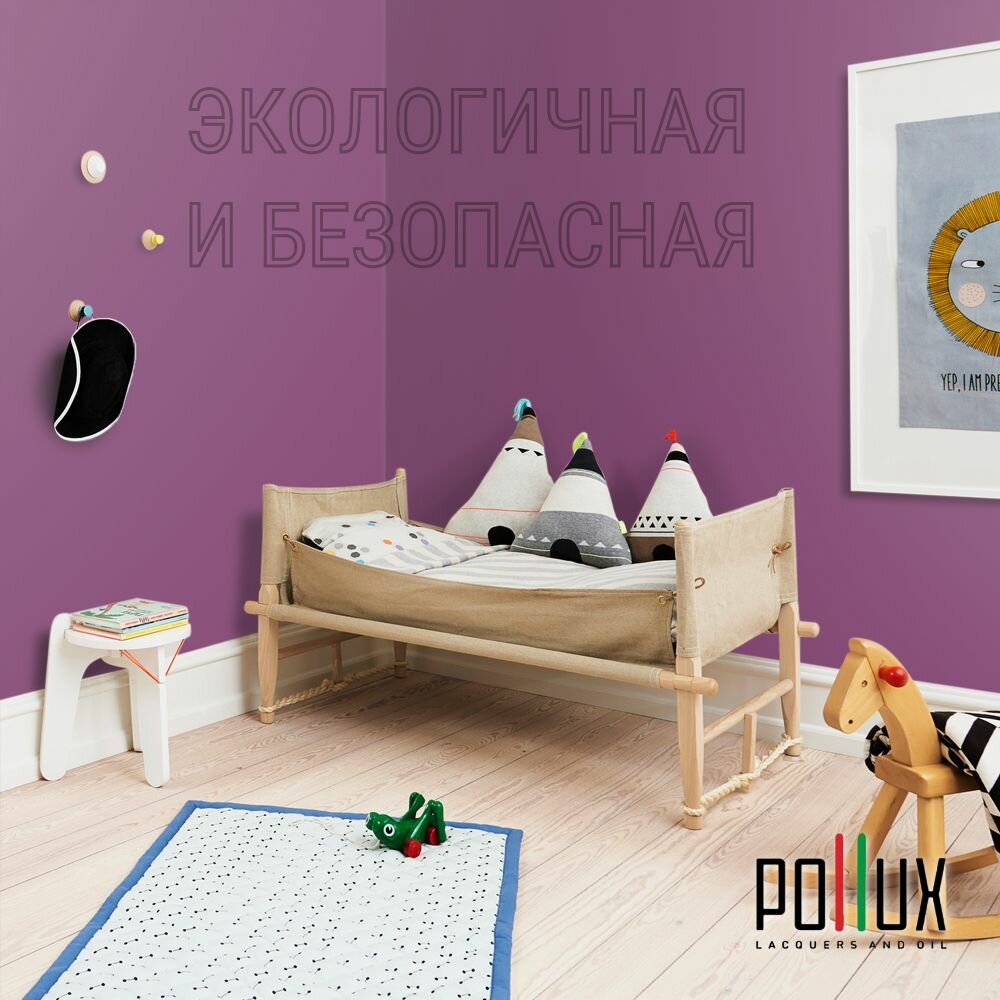 Краска моющаяся интерьерная для стен и потолков, Pollux INTERIOR без запаха, быстросохнущая, акриловая, матовое покрытие, цвет NCS S 2030-R40B, 1л.