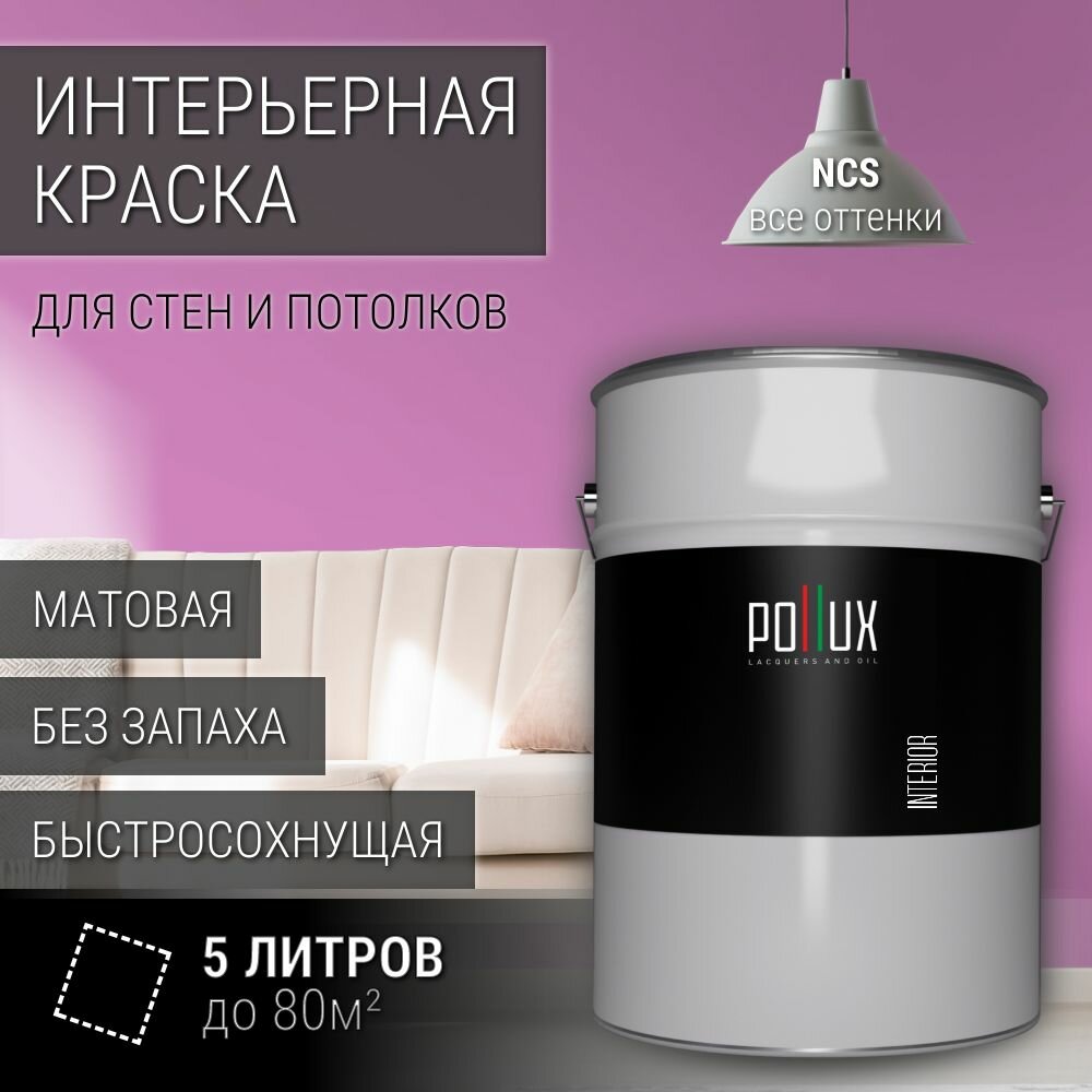 Краска моющаяся интерьерная для стен и потолков, Pollux INTERIOR без запаха, быстросохнущая, акриловая, матовое покрытие, цвет NCS S 1030-R40B, 5л.