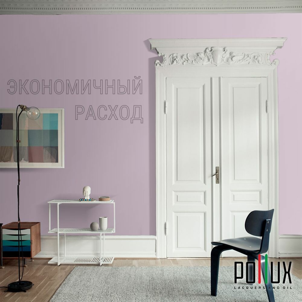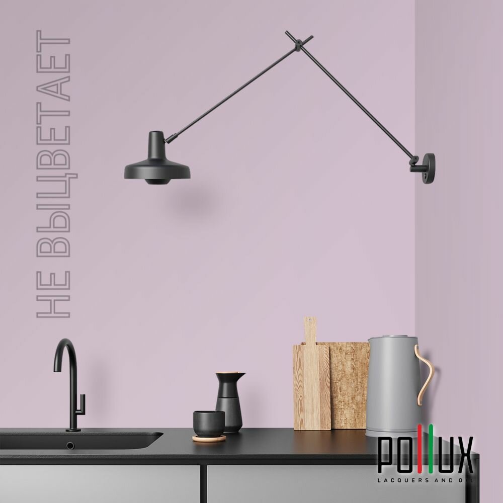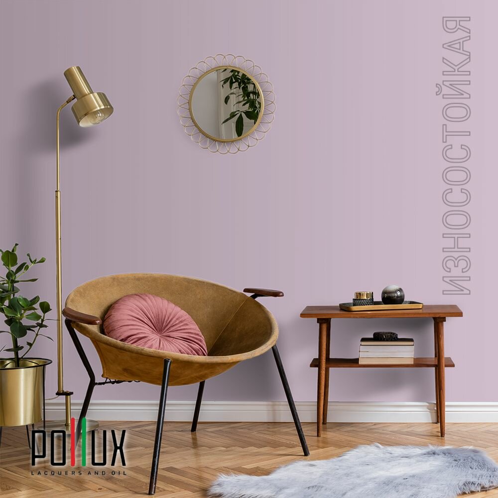 Краска моющаяся интерьерная для стен и потолков, Pollux INTERIOR без запаха, быстросохнущая, акриловая, матовое покрытие, цвет NCS S 0505-R40B, 1л.
