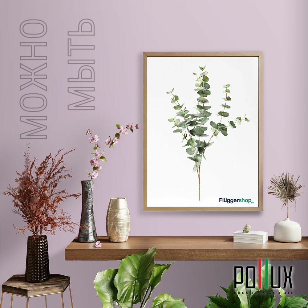 Краска моющаяся интерьерная для стен и потолков, Pollux INTERIOR без запаха, быстросохнущая, акриловая, матовое покрытие, цвет NCS S 2005-R40B, 1л.