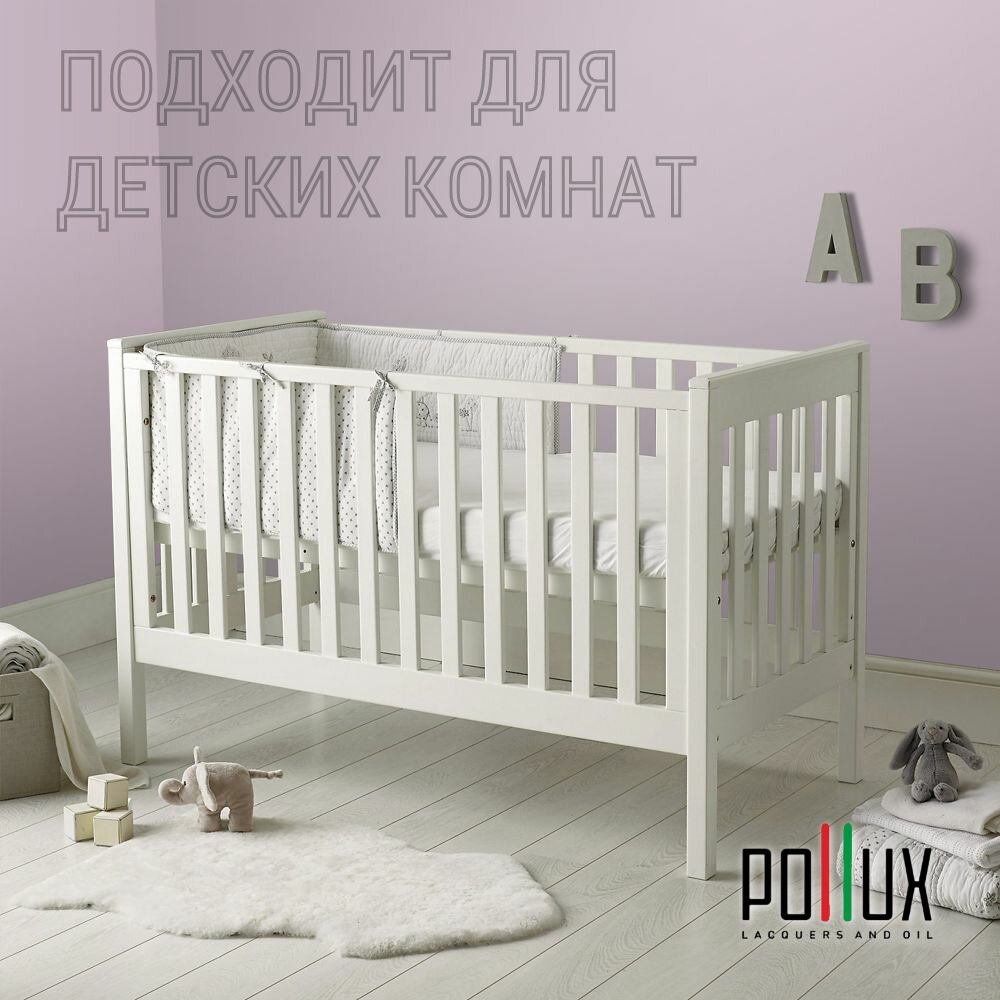 Краска моющаяся интерьерная для стен и потолков, Pollux INTERIOR без запаха, быстросохнущая, акриловая, матовое покрытие, цвет NCS S 0603-R40B, 1л.