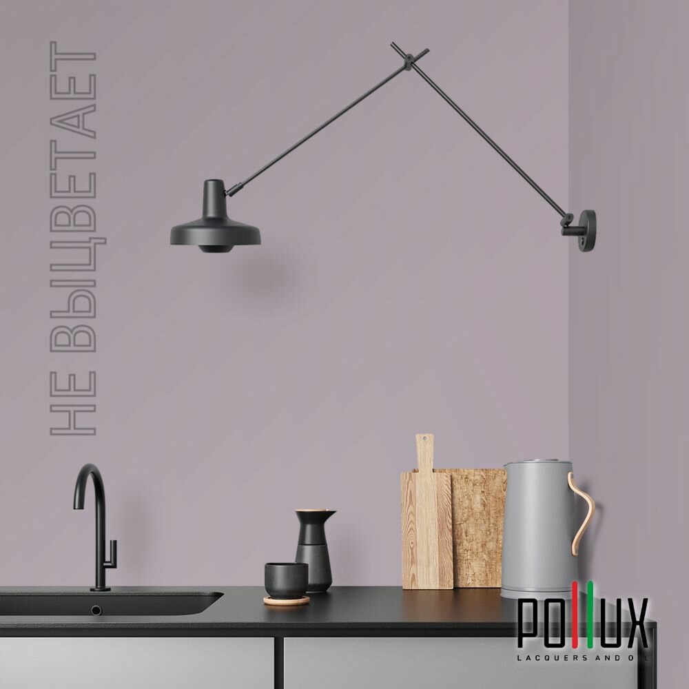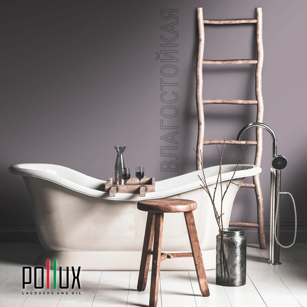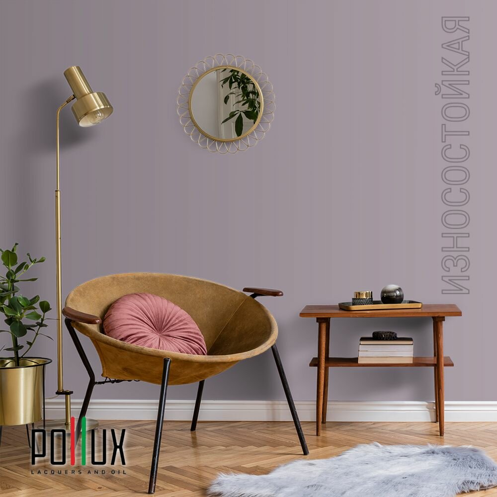 Краска моющаяся интерьерная для стен и потолков, Pollux INTERIOR без запаха, быстросохнущая, акриловая, матовое покрытие, цвет NCS S 7020-R40B, 1л.