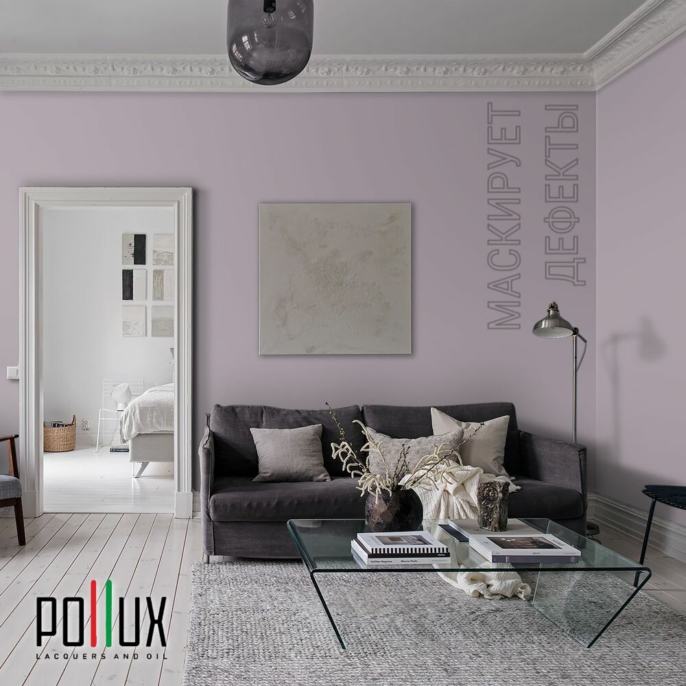 Краска моющаяся интерьерная для стен и потолков, Pollux INTERIOR без запаха, быстросохнущая, акриловая, матовое покрытие, цвет NCS S 0603-R40B, 1л.