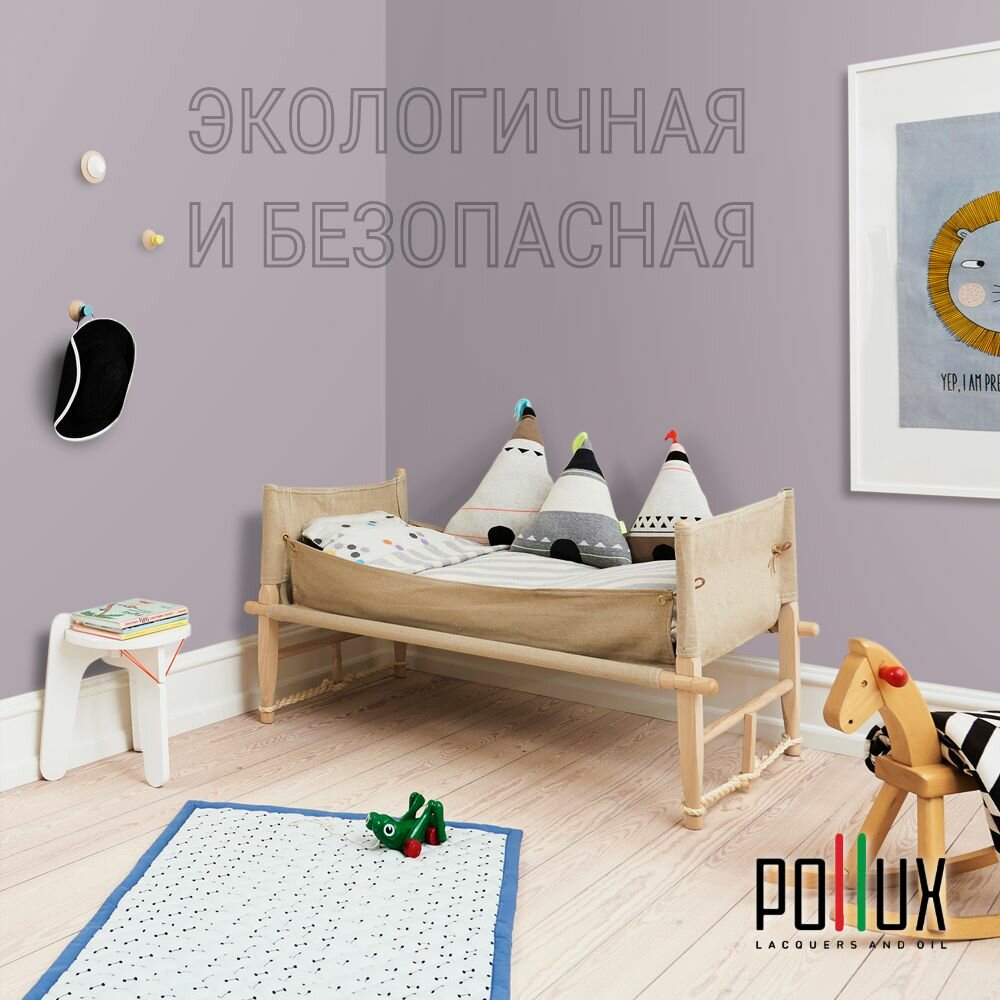 Краска моющаяся интерьерная для стен и потолков, Pollux INTERIOR без запаха, быстросохнущая, акриловая, матовое покрытие, цвет NCS S 1015-R40B, 1л.