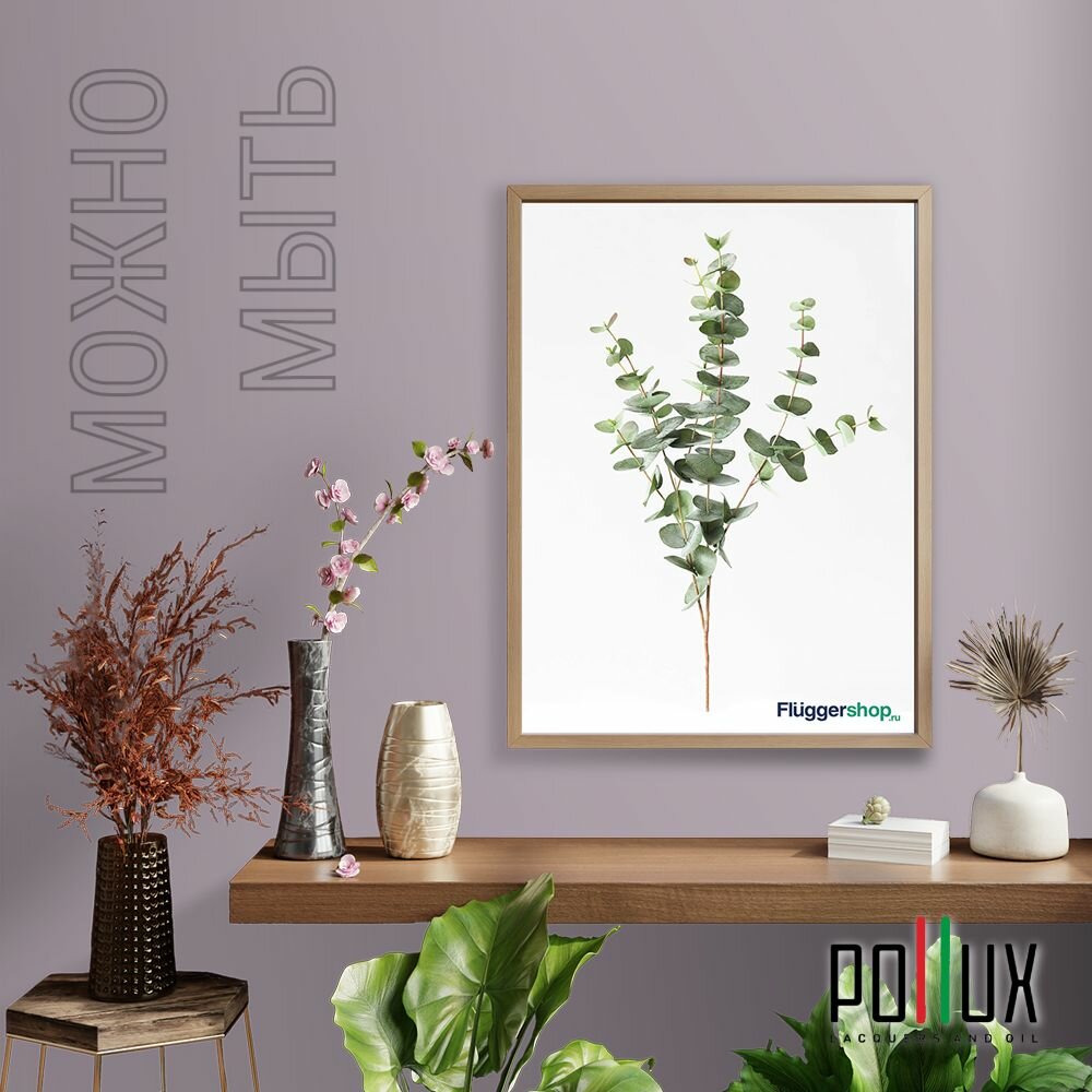 Краска моющаяся интерьерная для стен и потолков, Pollux INTERIOR без запаха, быстросохнущая, акриловая, матовое покрытие, цвет NCS S 2005-R40B, 1л.