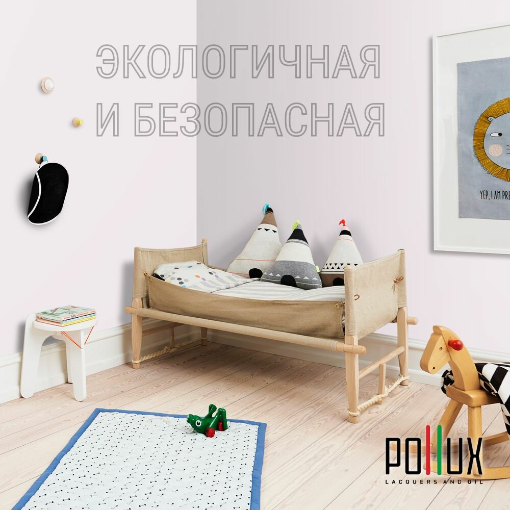 Краска моющаяся интерьерная для стен и потолков, Pollux INTERIOR без запаха, быстросохнущая, акриловая, матовое покрытие, цвет NCS S 0603-R40B, 1л.
