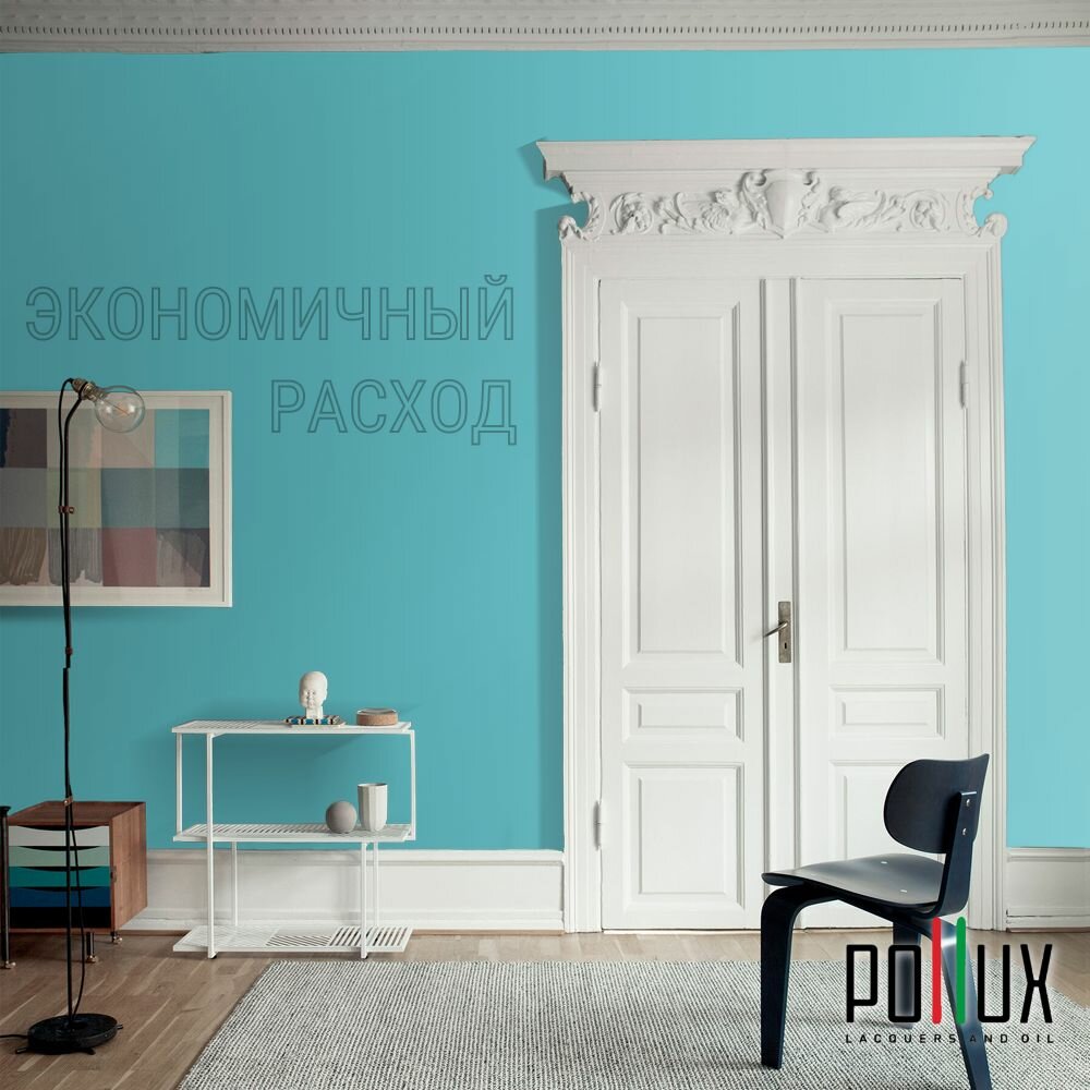 Краска моющаяся интерьерная для стен и потолков, Pollux INTERIOR без запаха, быстросохнущая, акриловая, матовое покрытие, цвет NCS S 2030-B30G, 1л.