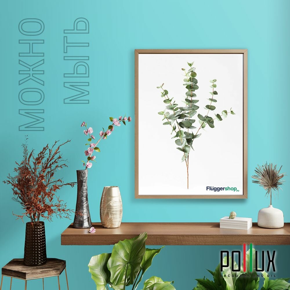 Краска моющаяся интерьерная для стен и потолков, Pollux INTERIOR без запаха, быстросохнущая, акриловая, матовое покрытие, цвет NCS S 1030-B30G, 1л.