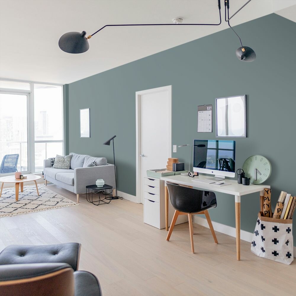 Краска моющаяся интерьерная для стен и потолков, Pollux INTERIOR без запаха, быстросохнущая, акриловая, матовое покрытие, цвет NCS S 4050-B30G, 1л.