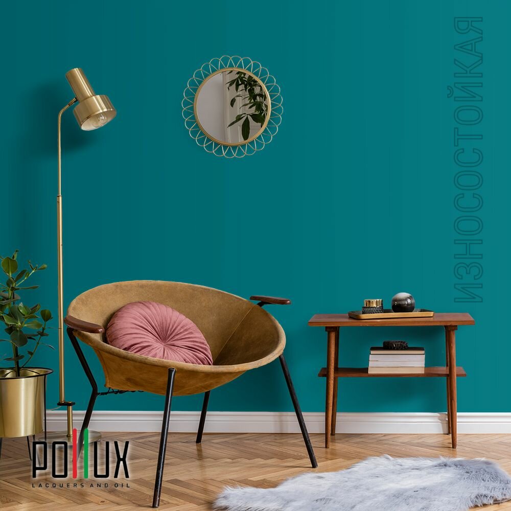 Краска моющаяся интерьерная для стен и потолков, Pollux INTERIOR без запаха, быстросохнущая, акриловая, матовое покрытие, цвет NCS S 6030-B30G, 1л.