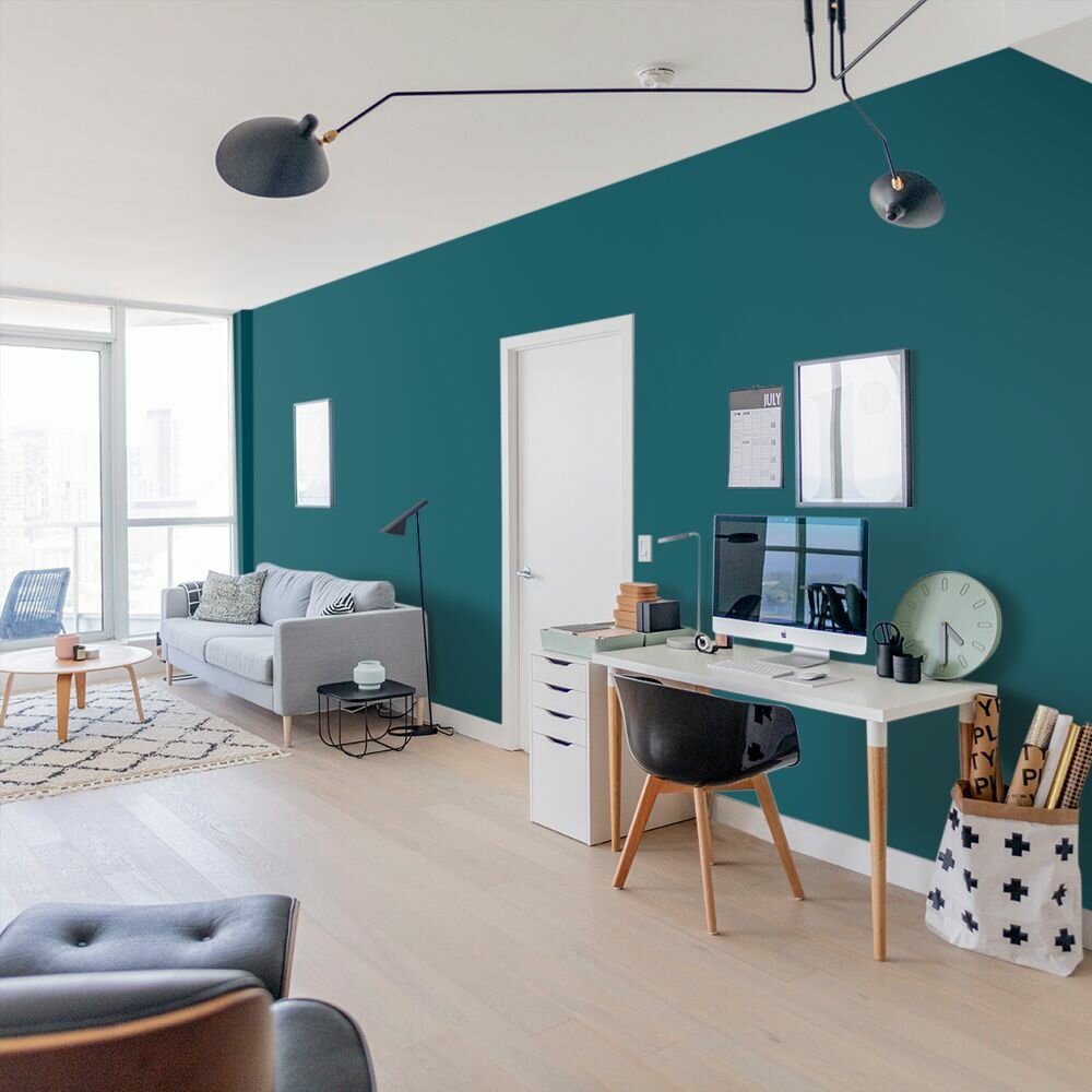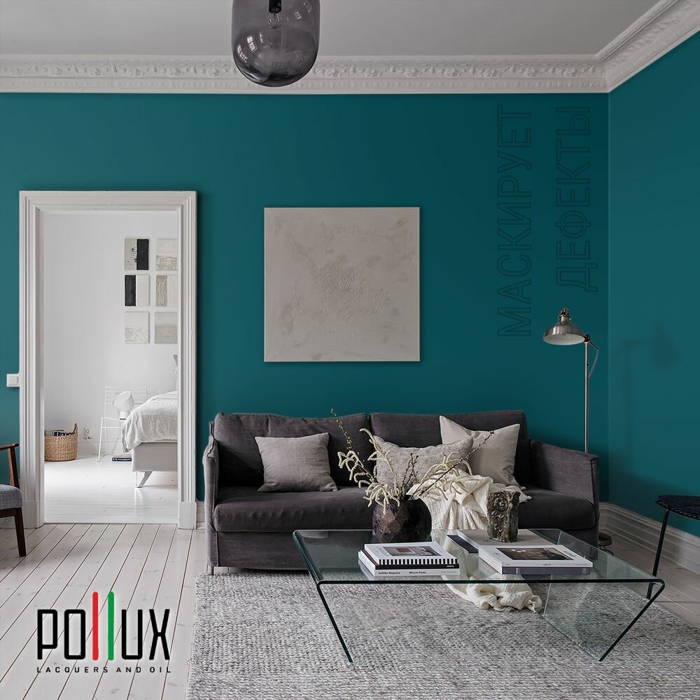 Краска моющаяся интерьерная для стен и потолков, Pollux INTERIOR без запаха, быстросохнущая, акриловая, матовое покрытие, цвет NCS S 4050-B30G, 1л.