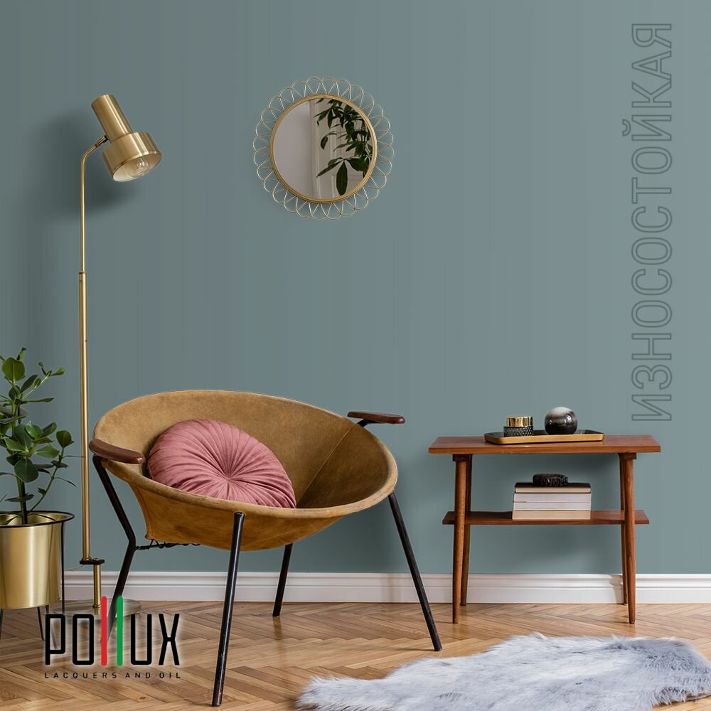Краска моющаяся интерьерная для стен и потолков, Pollux INTERIOR без запаха, быстросохнущая, акриловая, матовое покрытие, цвет NCS S 8010-B30G, 1л.