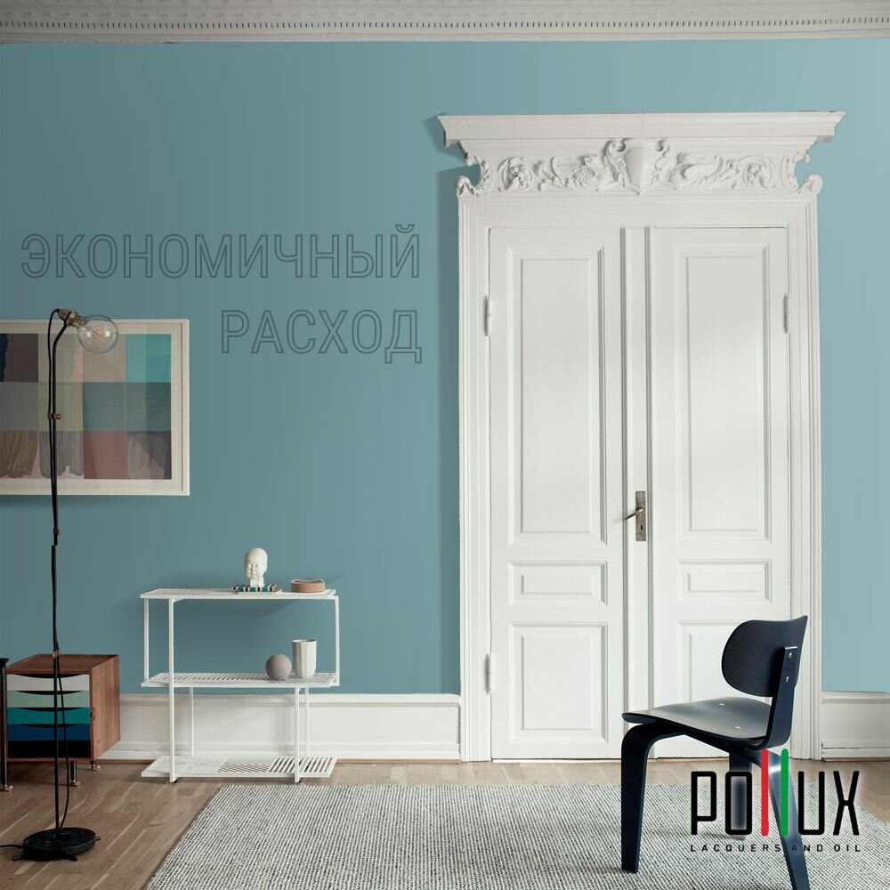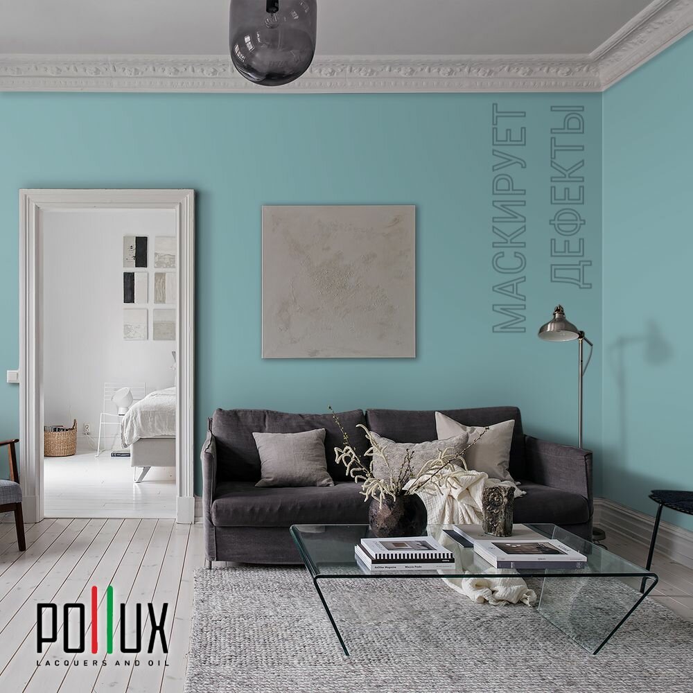 Краска моющаяся интерьерная для стен и потолков, Pollux INTERIOR без запаха, быстросохнущая, акриловая, матовое покрытие, цвет NCS S 8010-B30G, 1л.
