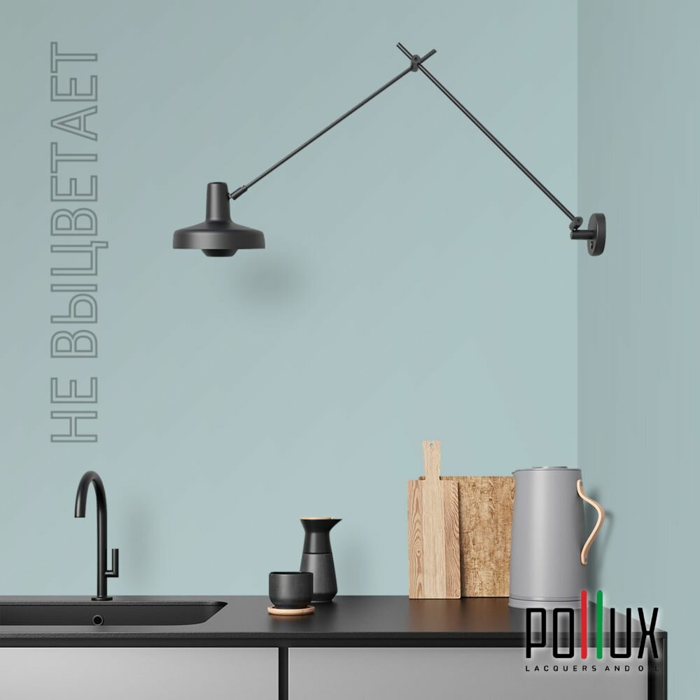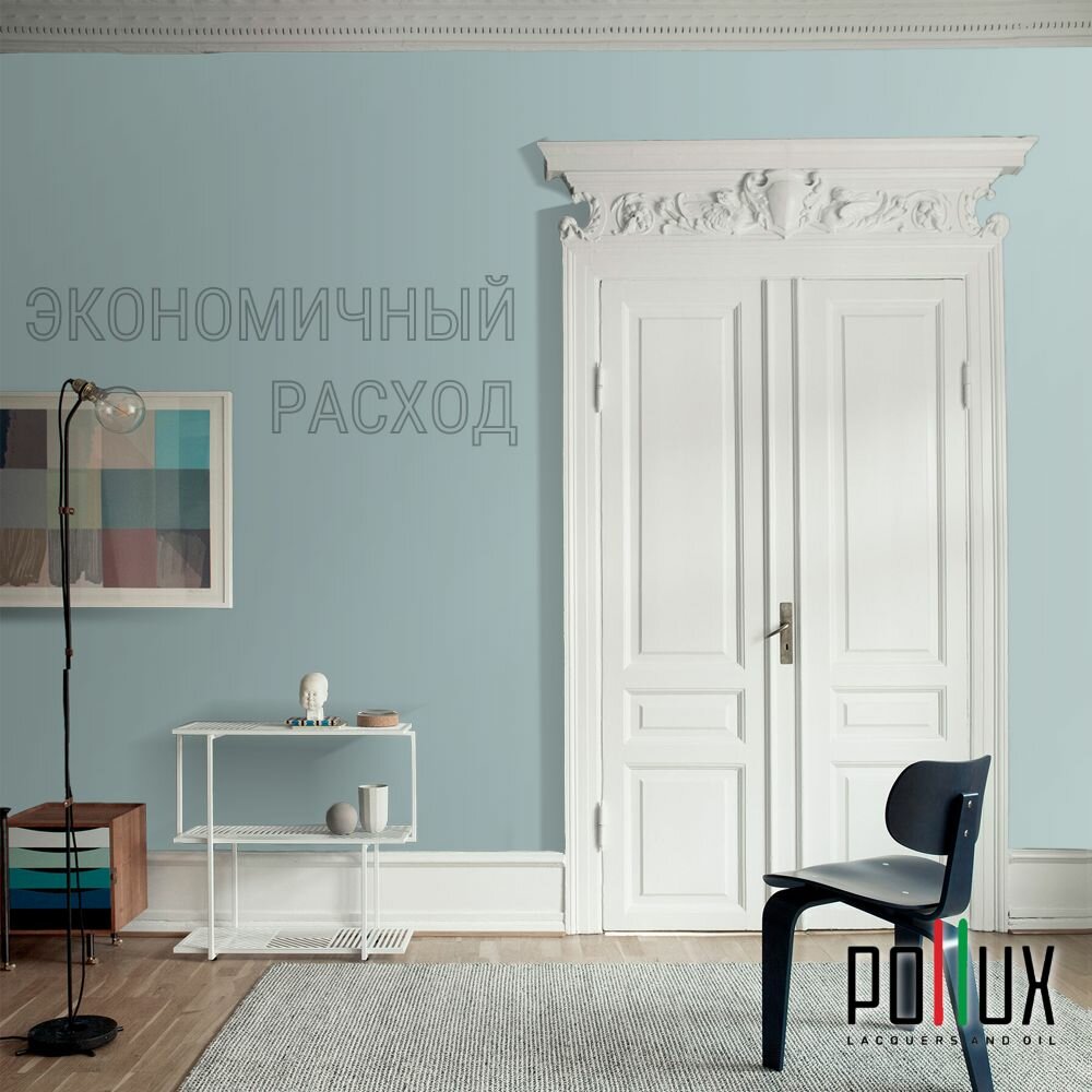 Краска моющаяся интерьерная для стен и потолков, Pollux INTERIOR без запаха, быстросохнущая, акриловая, матовое покрытие, цвет NCS S 1030-B30G, 1л.
