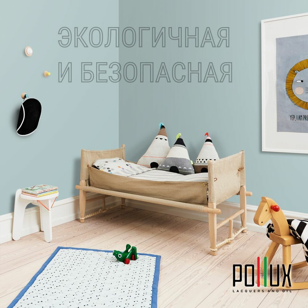 Краска моющаяся интерьерная для стен и потолков, Pollux INTERIOR без запаха, быстросохнущая, акриловая, матовое покрытие, цвет NCS S 1020-B30G, 1л.