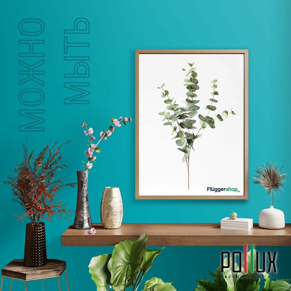 Краска моющаяся интерьерная для стен и потолков, Pollux INTERIOR без запаха, быстросохнущая, акриловая, матовое покрытие, цвет NCS S 6030-B30G, 1л.