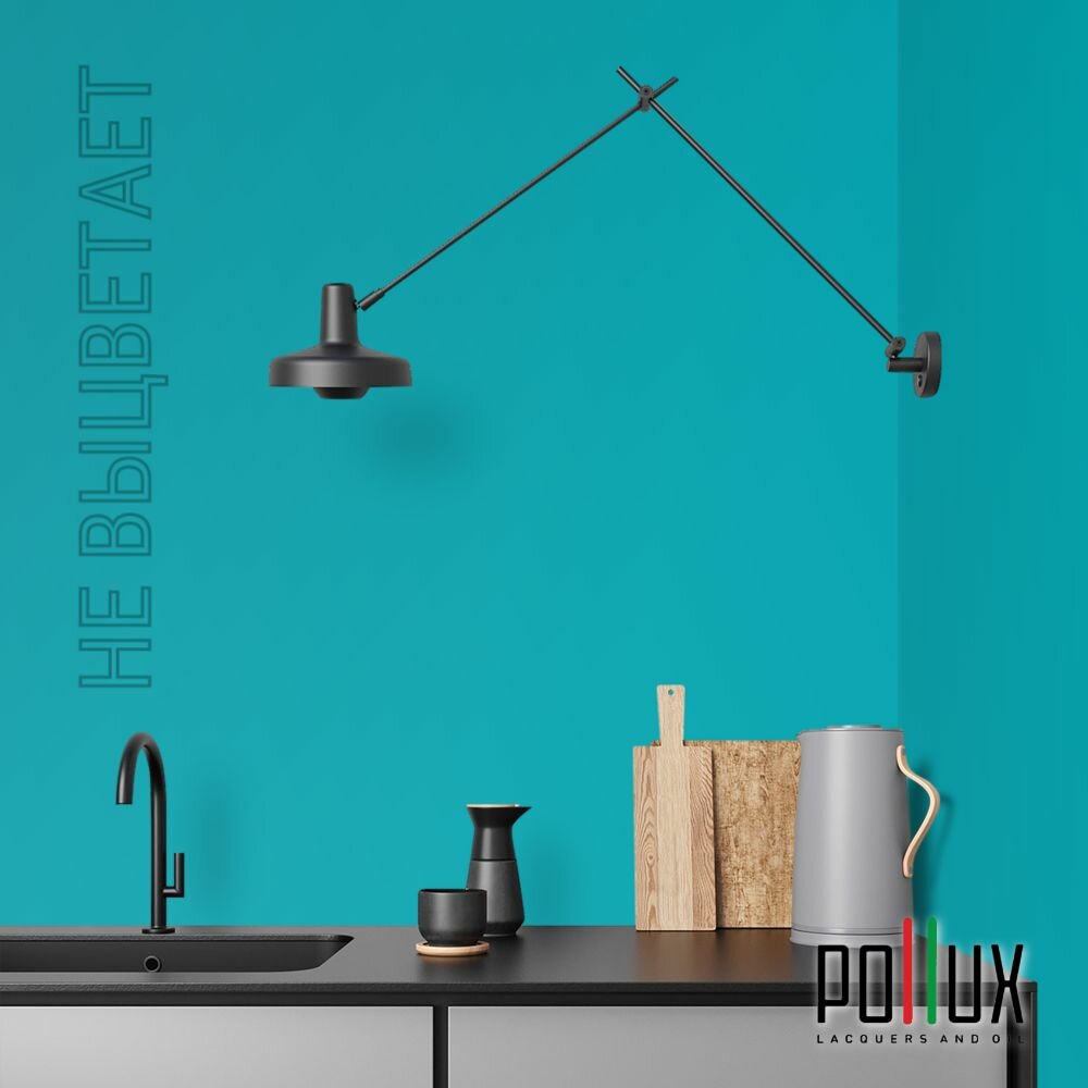 Краска моющаяся интерьерная для стен и потолков, Pollux INTERIOR без запаха, быстросохнущая, акриловая, матовое покрытие, цвет NCS S 5030-B30G, 1л.