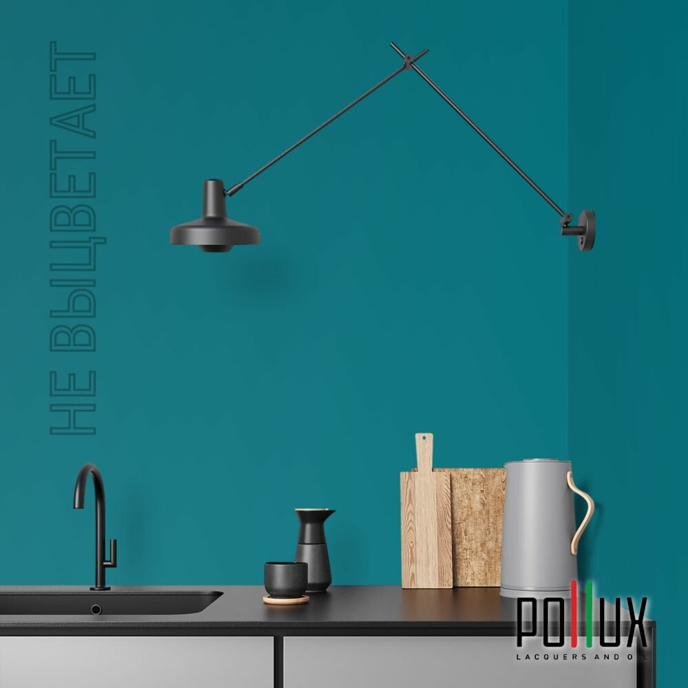 Краска моющаяся интерьерная для стен и потолков, Pollux INTERIOR без запаха, быстросохнущая, акриловая, матовое покрытие, цвет NCS S 5030-B30G, 1л.