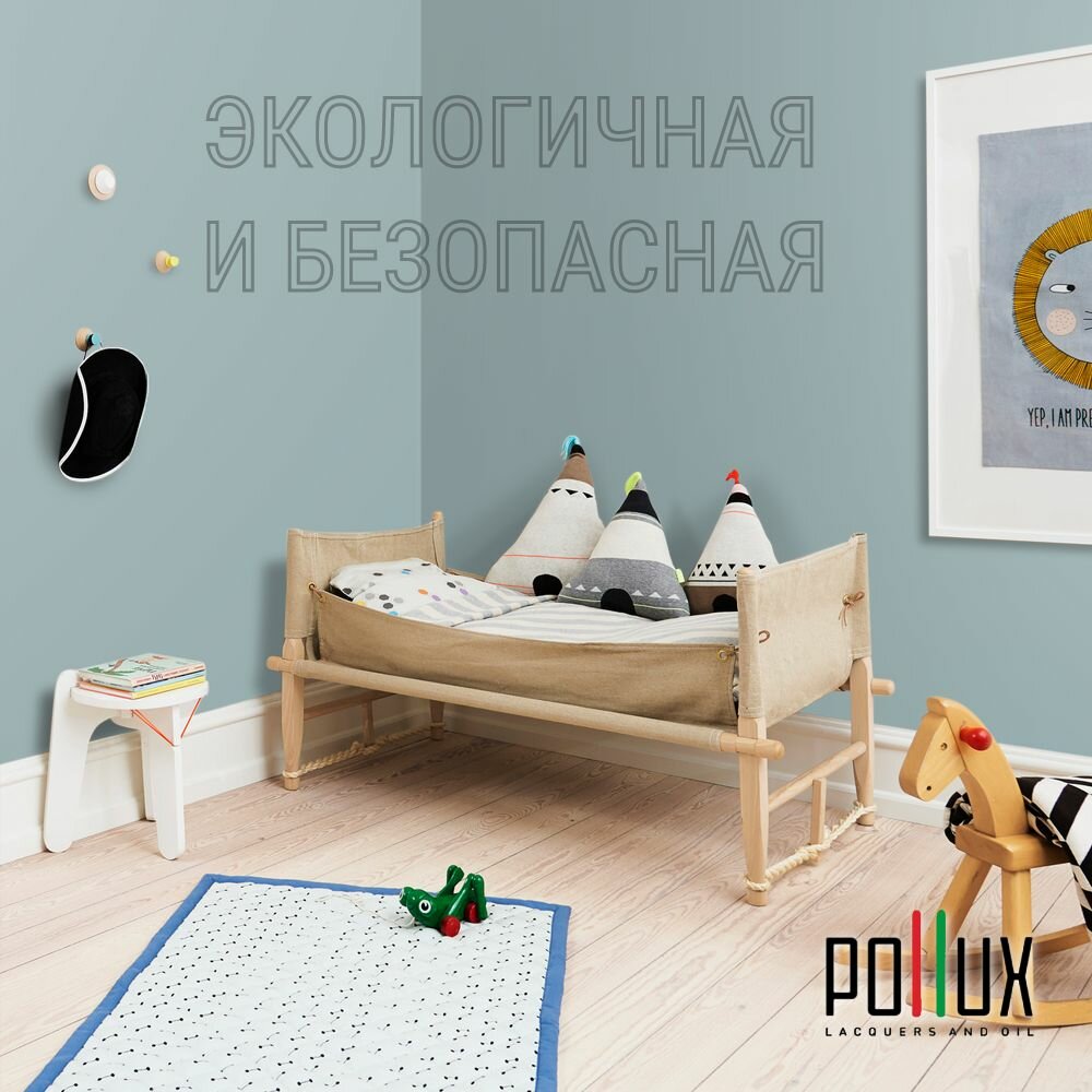 Краска моющаяся интерьерная для стен и потолков, Pollux INTERIOR без запаха, быстросохнущая, акриловая, матовое покрытие, цвет NCS S 4040-B30G, 1л.