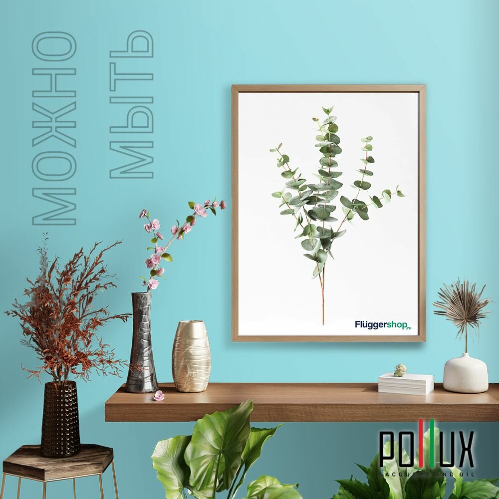 Краска моющаяся интерьерная для стен и потолков, Pollux INTERIOR без запаха, быстросохнущая, акриловая, матовое покрытие, цвет NCS S 5040-B30G, 1л.