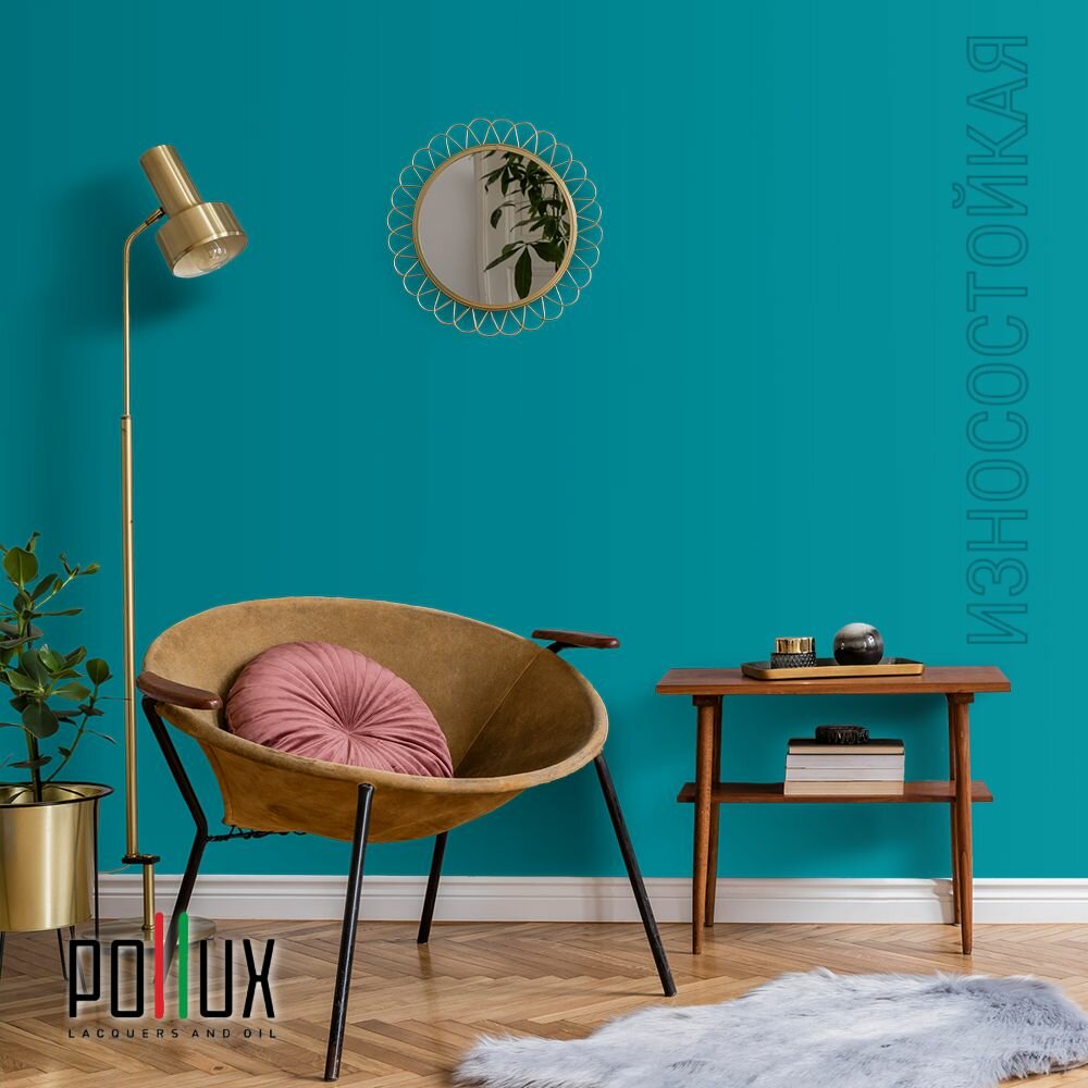 СохранитьКраска моющаяся интерьерная для стен и потолков, Pollux INTERIOR без запаха, быстросохнущая, акриловая, матовое покрытие, цвет NCS S 2555-B30G, 1л. интересное: