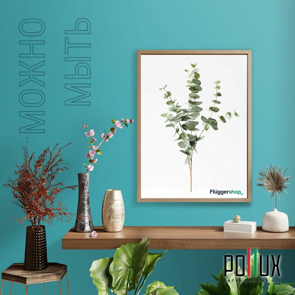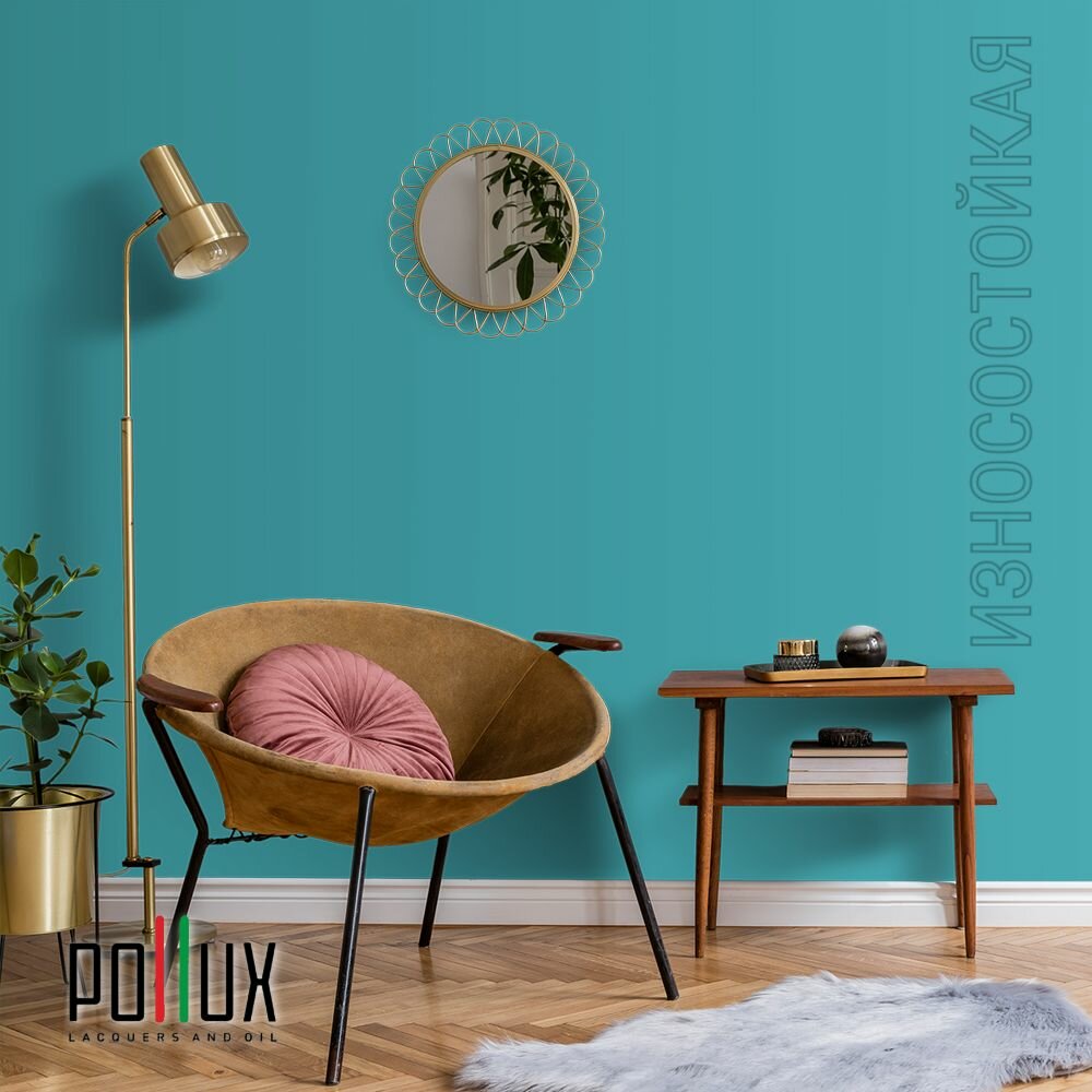 Краска моющаяся интерьерная для стен и потолков, Pollux INTERIOR без запаха, быстросохнущая, акриловая, матовое покрытие, цвет NCS S 5040-B30G, 1л.
