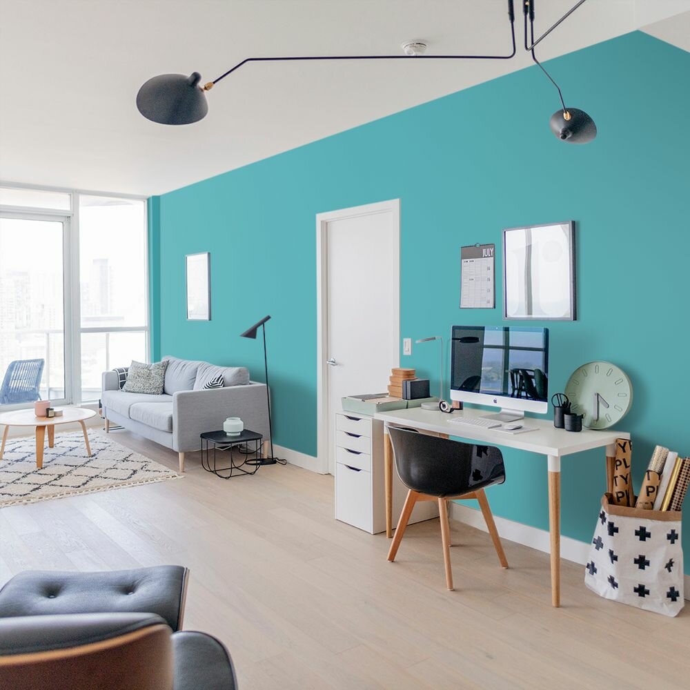 Краска моющаяся интерьерная для стен и потолков, Pollux INTERIOR без запаха, быстросохнущая, акриловая, матовое покрытие, цвет NCS S 4550-B30G, 1л.