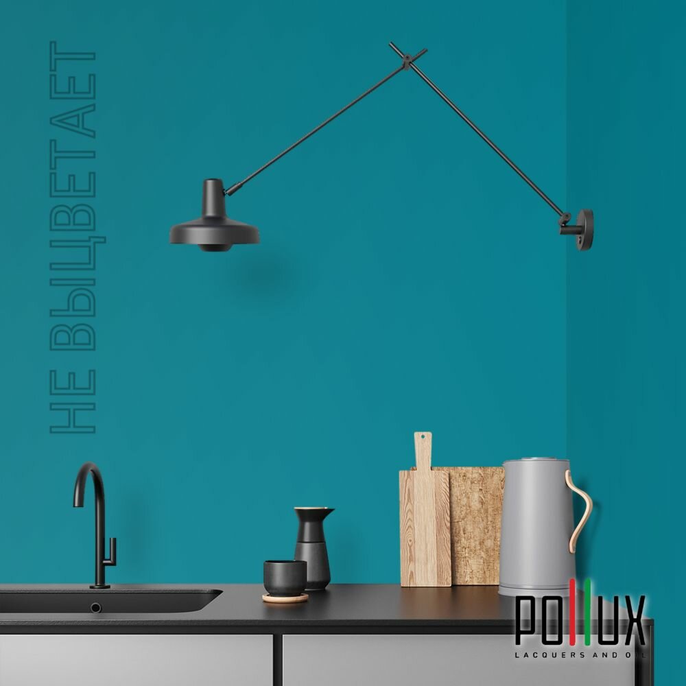 Краска моющаяся интерьерная для стен и потолков, Pollux INTERIOR без запаха, быстросохнущая, акриловая, матовое покрытие, цвет NCS S 5030-B30G, 1л.