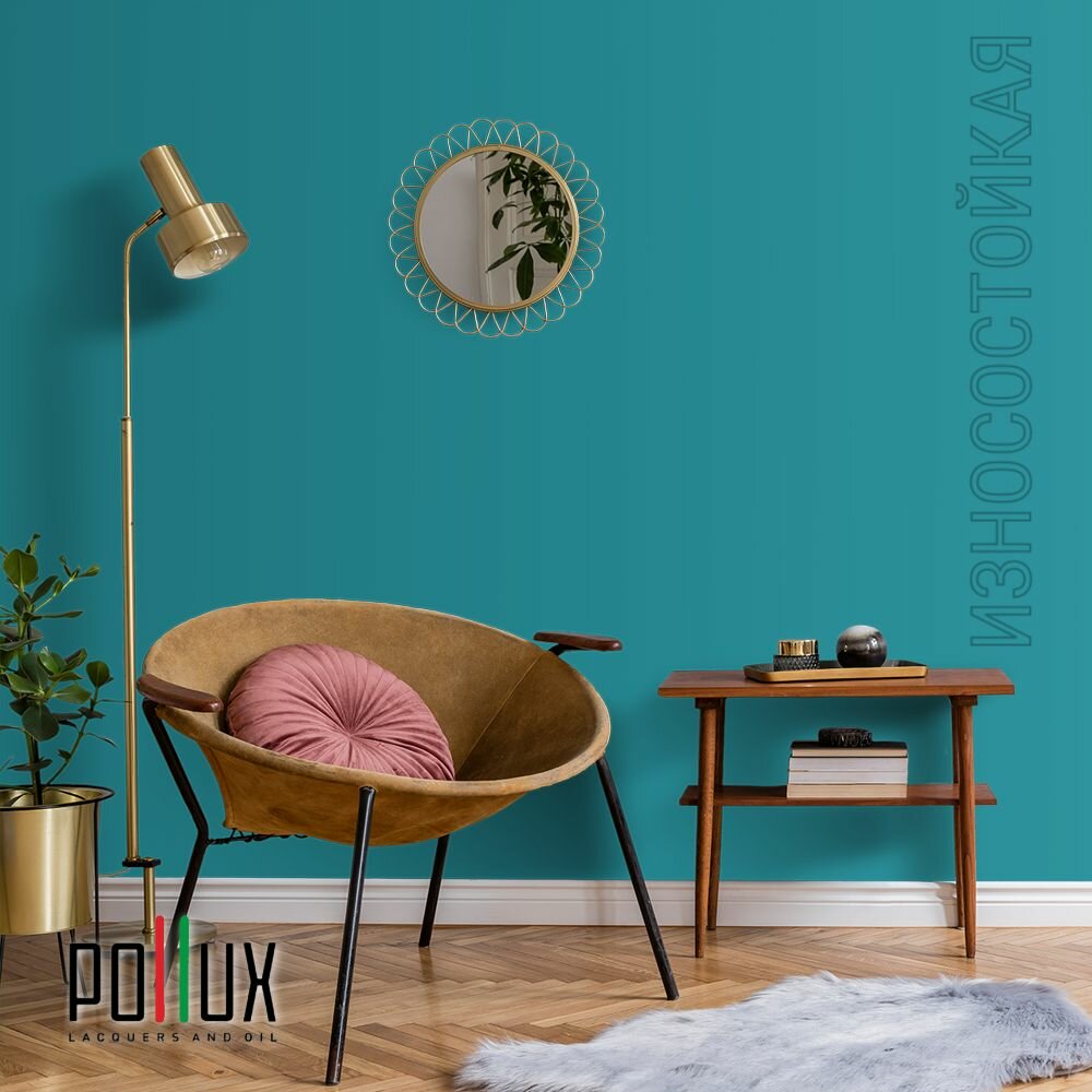 Краска моющаяся интерьерная для стен и потолков, Pollux INTERIOR без запаха, быстросохнущая, акриловая, матовое покрытие, цвет NCS S 5040-B30G, 1л.