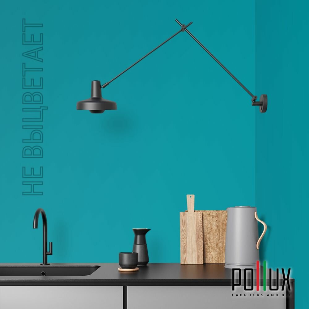 Краска моющаяся интерьерная для стен и потолков, Pollux INTERIOR без запаха, быстросохнущая, акриловая, матовое покрытие, цвет NCS S 5030-B30G, 1л.