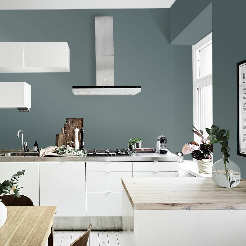 Краска моющаяся интерьерная для стен и потолков, Pollux INTERIOR без запаха, быстросохнущая, акриловая, матовое покрытие, цвет NCS S 4050-B30G, 1л.