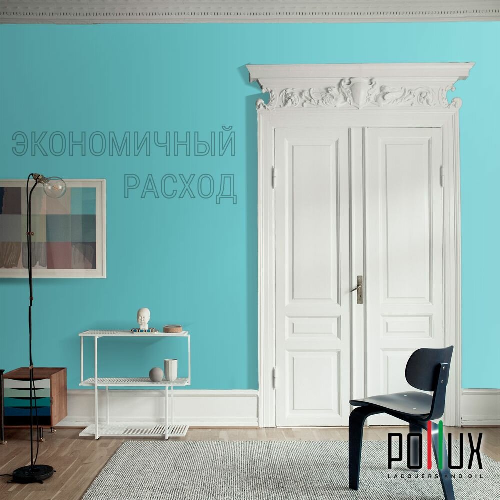 Краска моющаяся интерьерная для стен и потолков, Pollux INTERIOR без запаха, быстросохнущая, акриловая, матовое покрытие, цвет NCS S 2030-B30G, 1л.