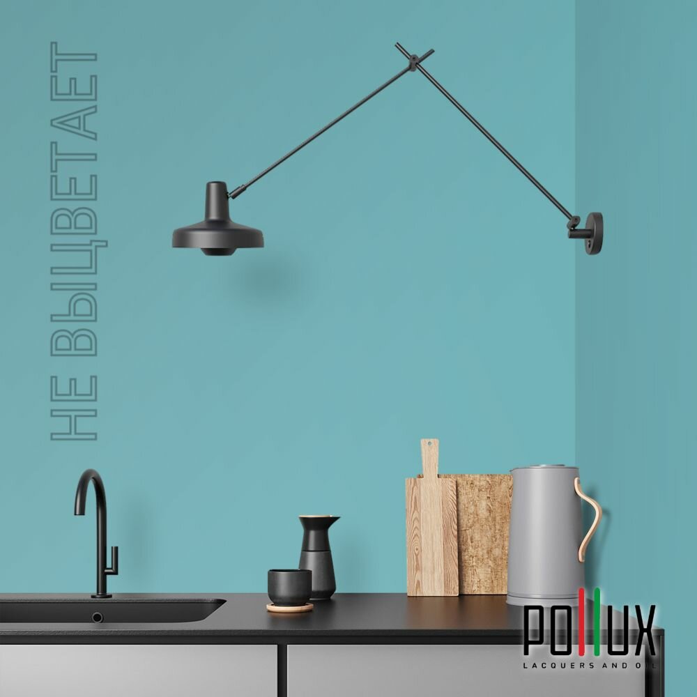 Краска моющаяся интерьерная для стен и потолков, Pollux INTERIOR без запаха, быстросохнущая, акриловая, матовое покрытие, цвет NCS S 4050-B30G, 1л.