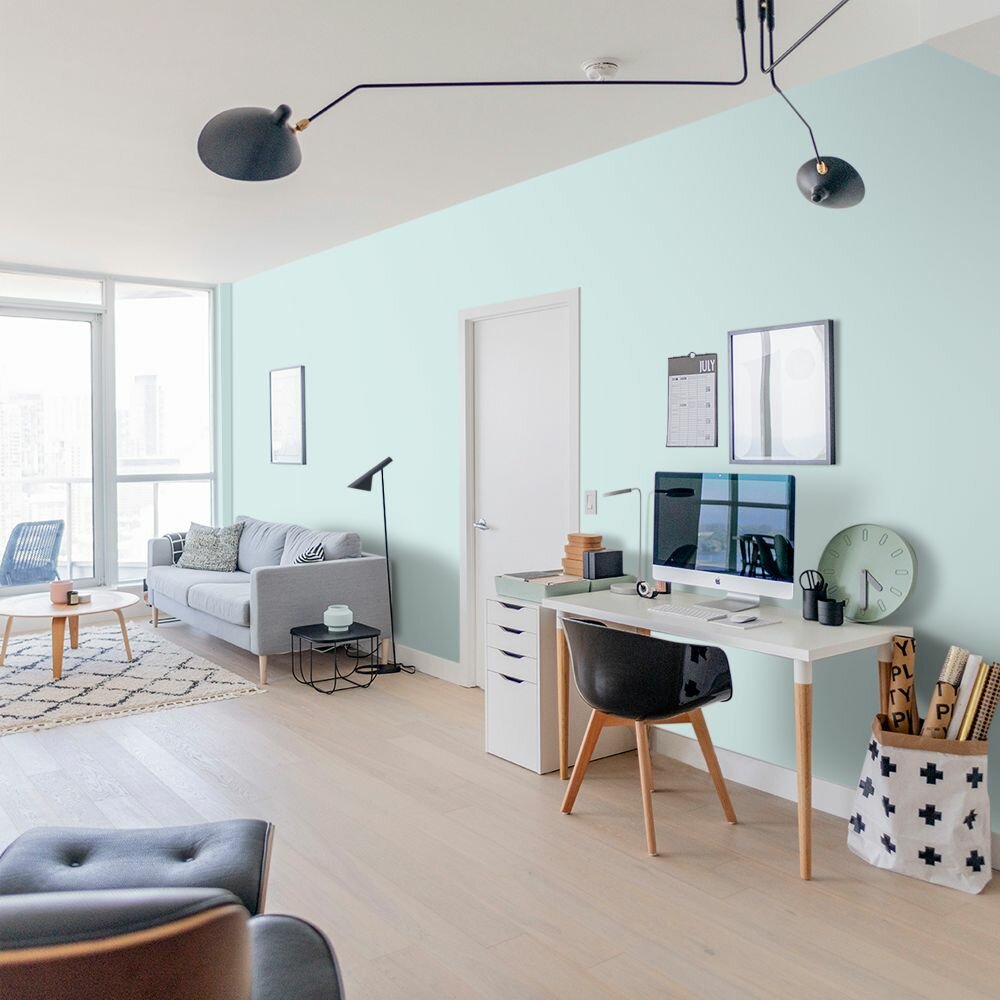 Краска моющаяся интерьерная для стен и потолков, Pollux INTERIOR без запаха, быстросохнущая, акриловая, матовое покрытие, цвет NCS S 2010-B30G, 1л.