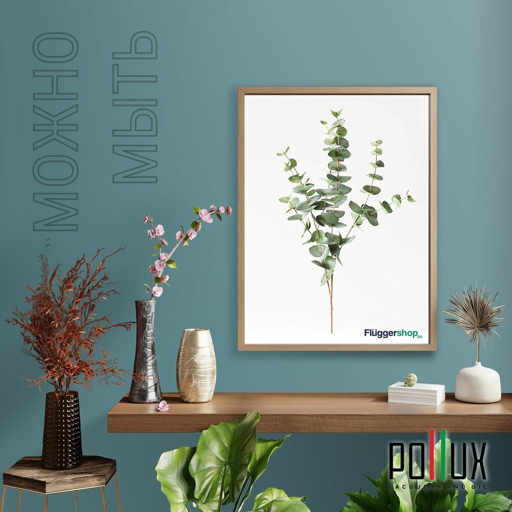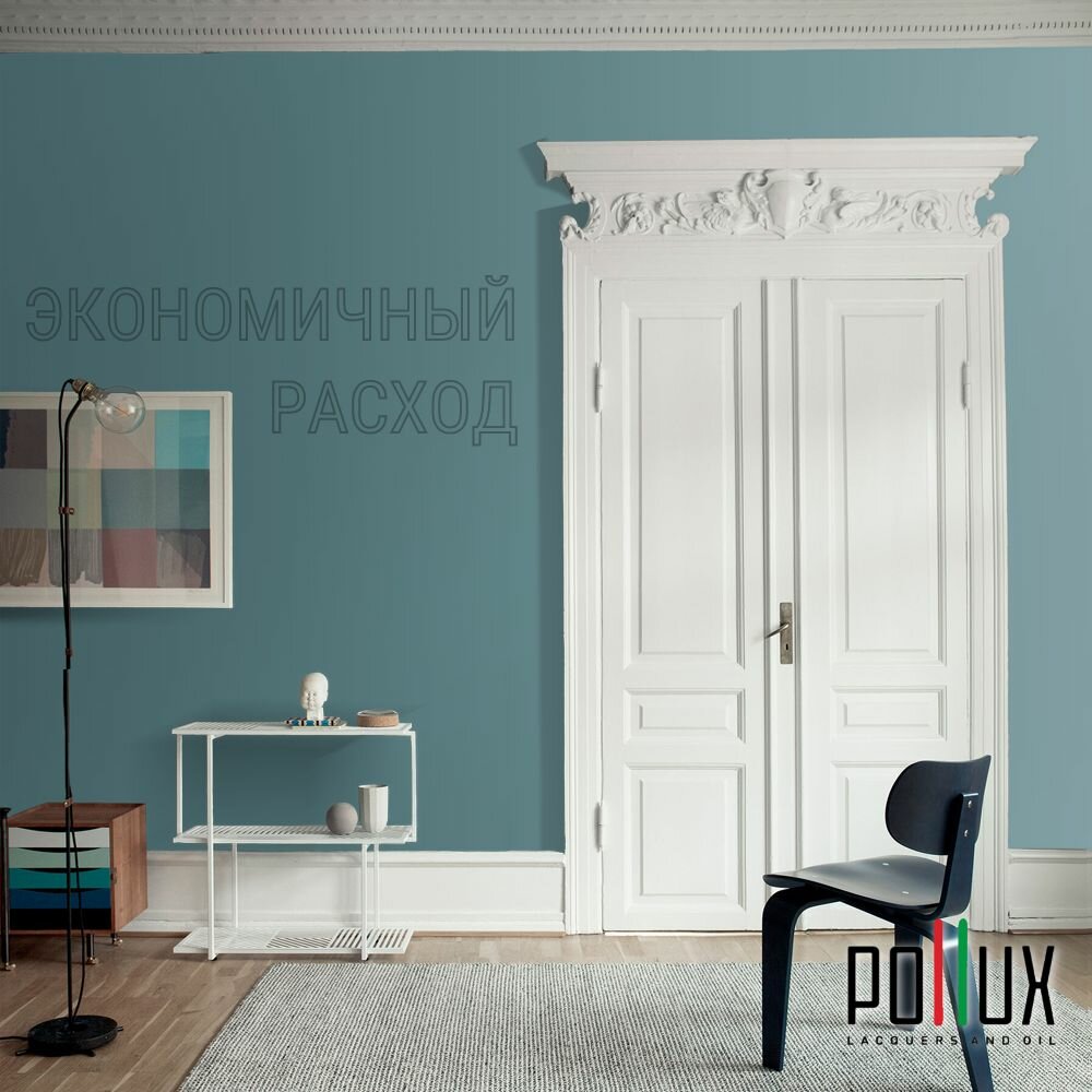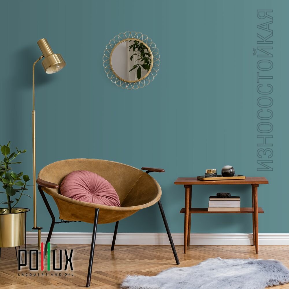 Краска моющаяся интерьерная для стен и потолков, Pollux INTERIOR без запаха, быстросохнущая, акриловая, матовое покрытие, цвет NCS S 8010-B30G, 1л.