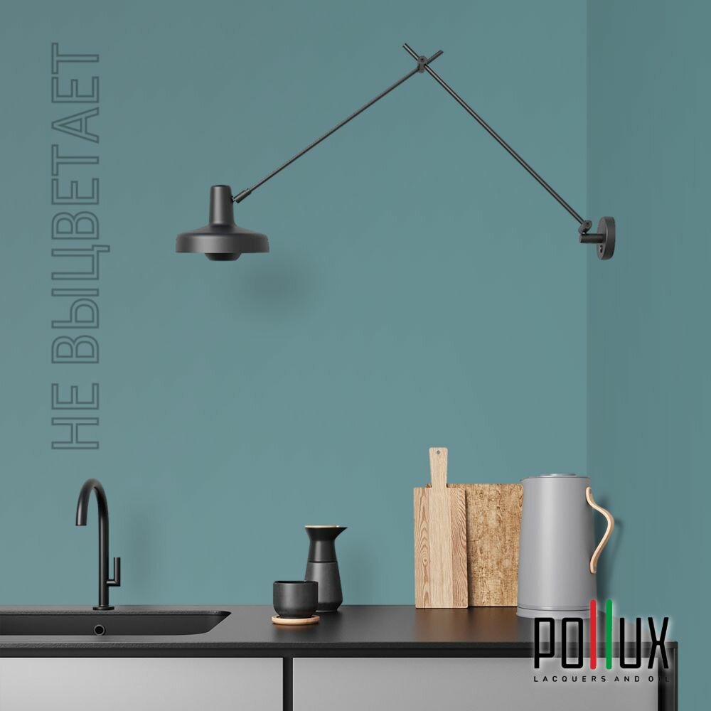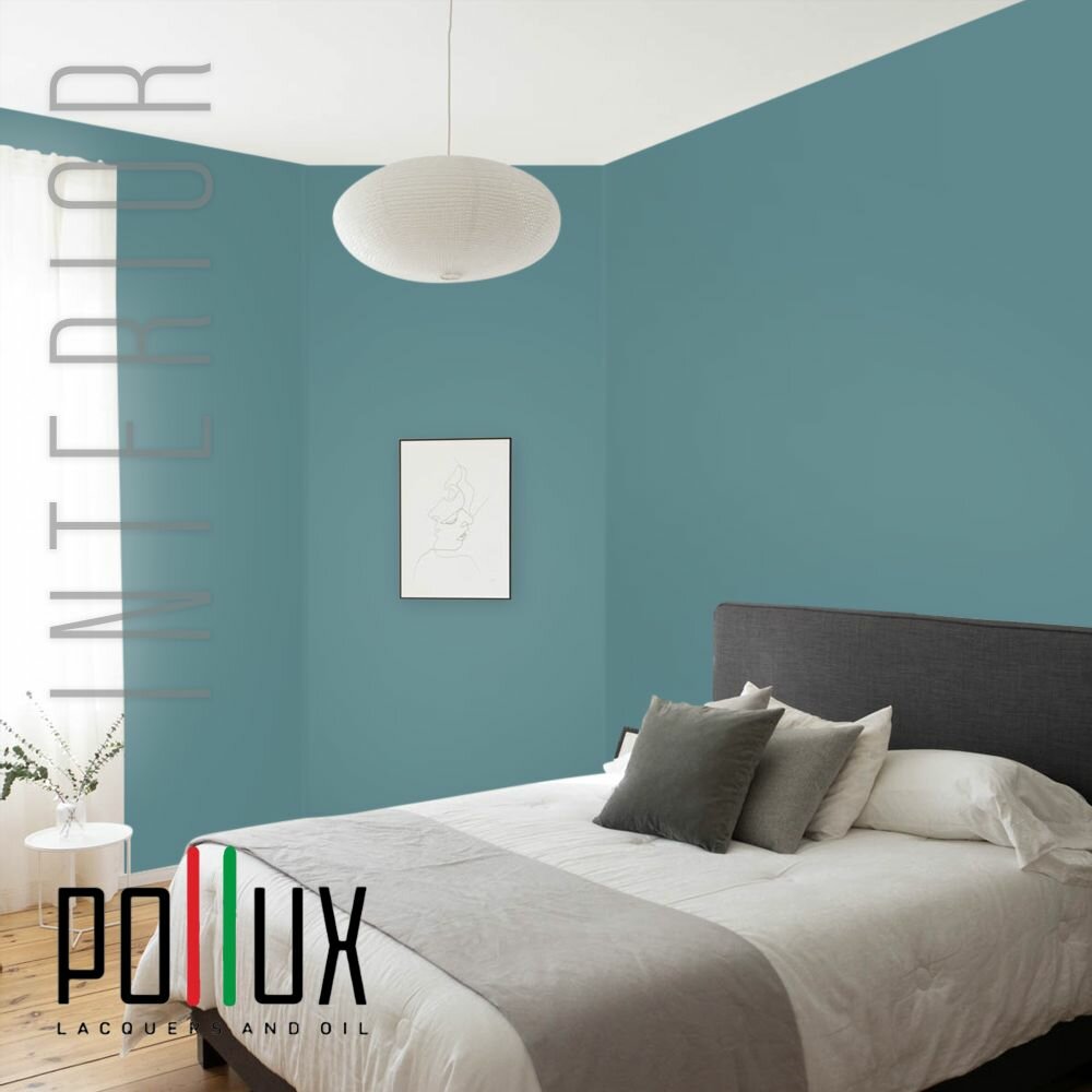 Краска моющаяся интерьерная для стен и потолков, Pollux INTERIOR без запаха, быстросохнущая, акриловая, матовое покрытие, цвет NCS S 4050-B30G, 1л.