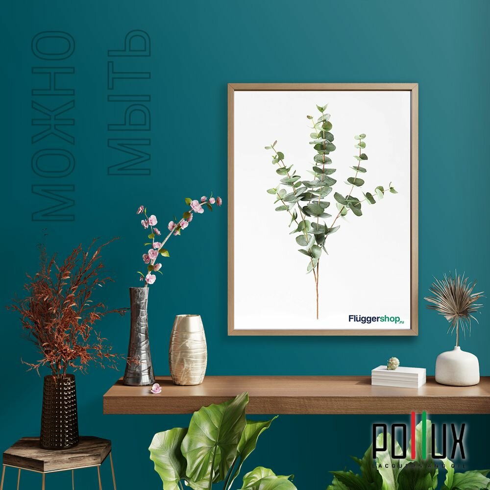 Краска моющаяся интерьерная для стен и потолков, Pollux INTERIOR без запаха, быстросохнущая, акриловая, матовое покрытие, цвет NCS S 5040-B30G, 1л.