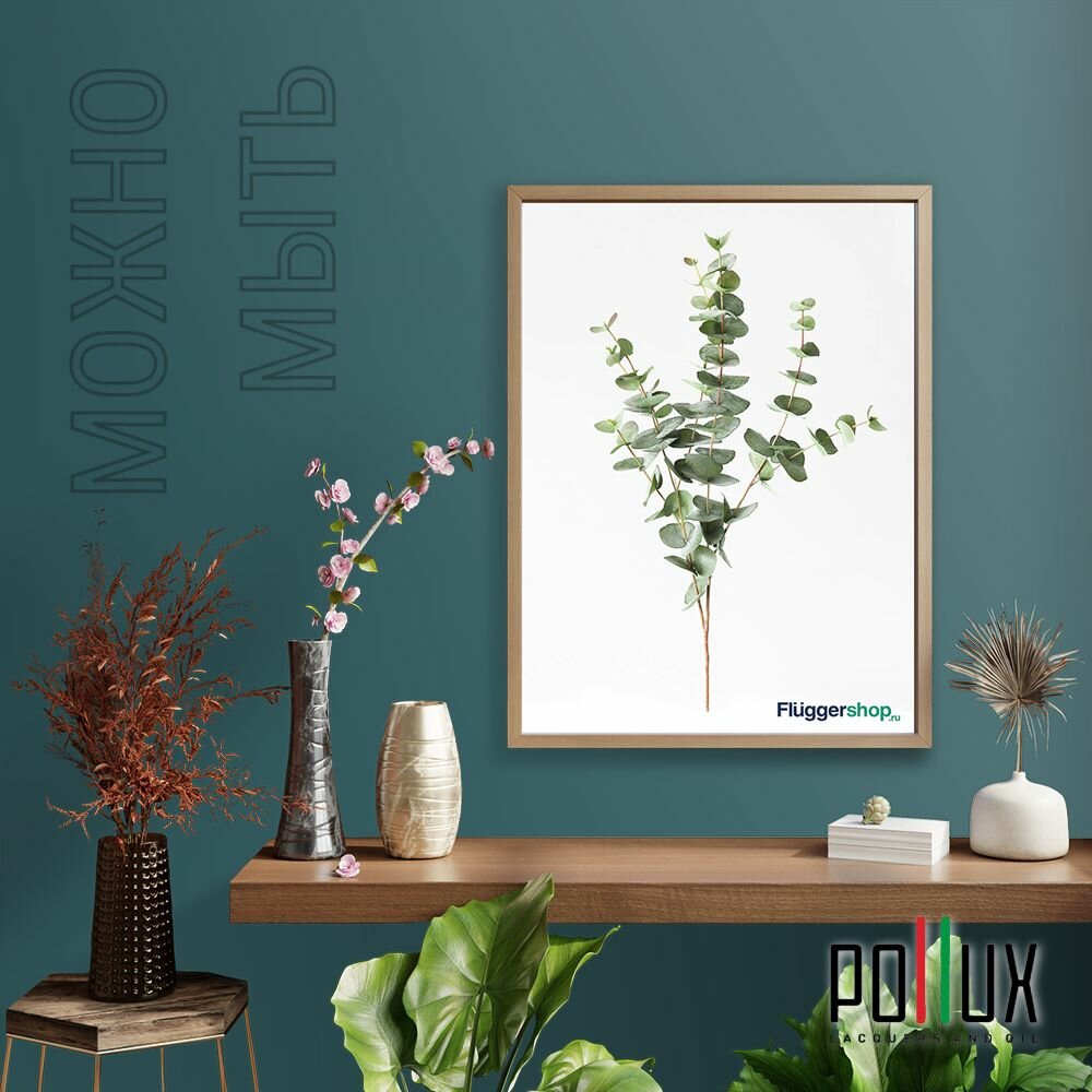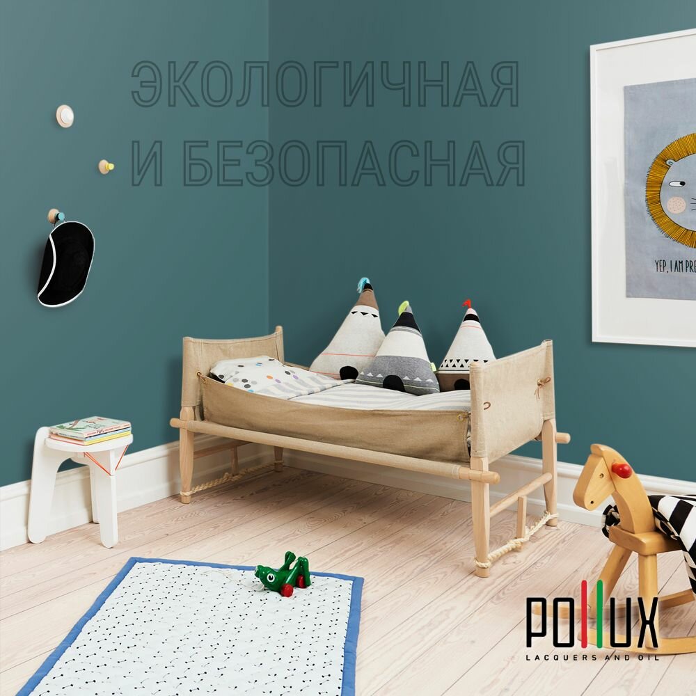 Краска моющаяся интерьерная для стен и потолков, Pollux INTERIOR без запаха, быстросохнущая, акриловая, матовое покрытие, цвет NCS S 8010-B30G, 1л.