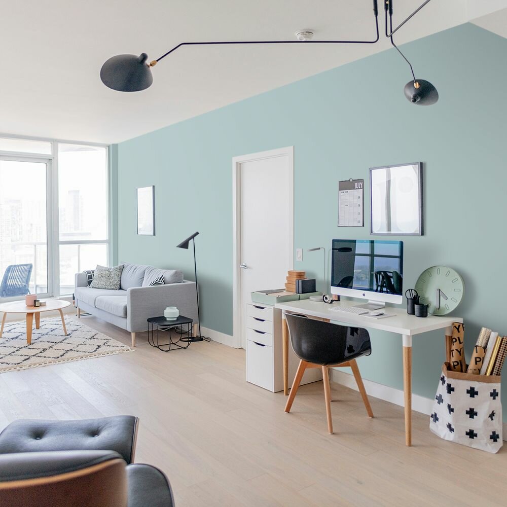 Краска моющаяся интерьерная для стен и потолков, Pollux INTERIOR без запаха, быстросохнущая, акриловая, матовое покрытие, цвет NCS S 2010-B30G, 1л.