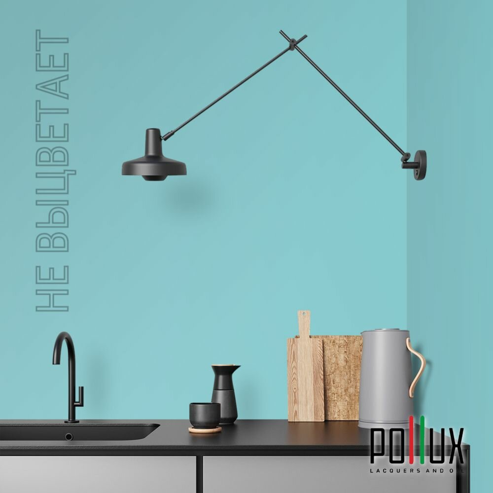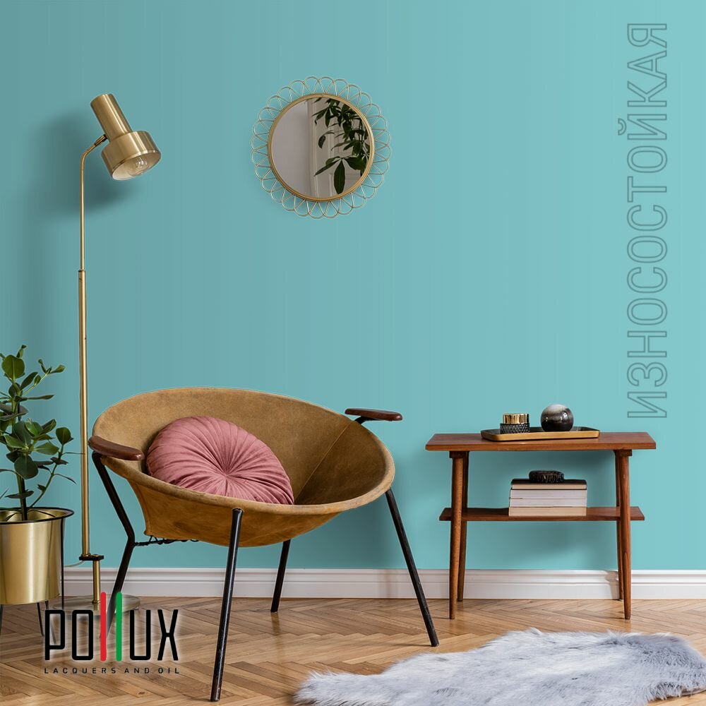 Краска моющаяся интерьерная для стен и потолков, Pollux INTERIOR без запаха, быстросохнущая, акриловая, матовое покрытие, цвет NCS S 5030-B30G, 1л.