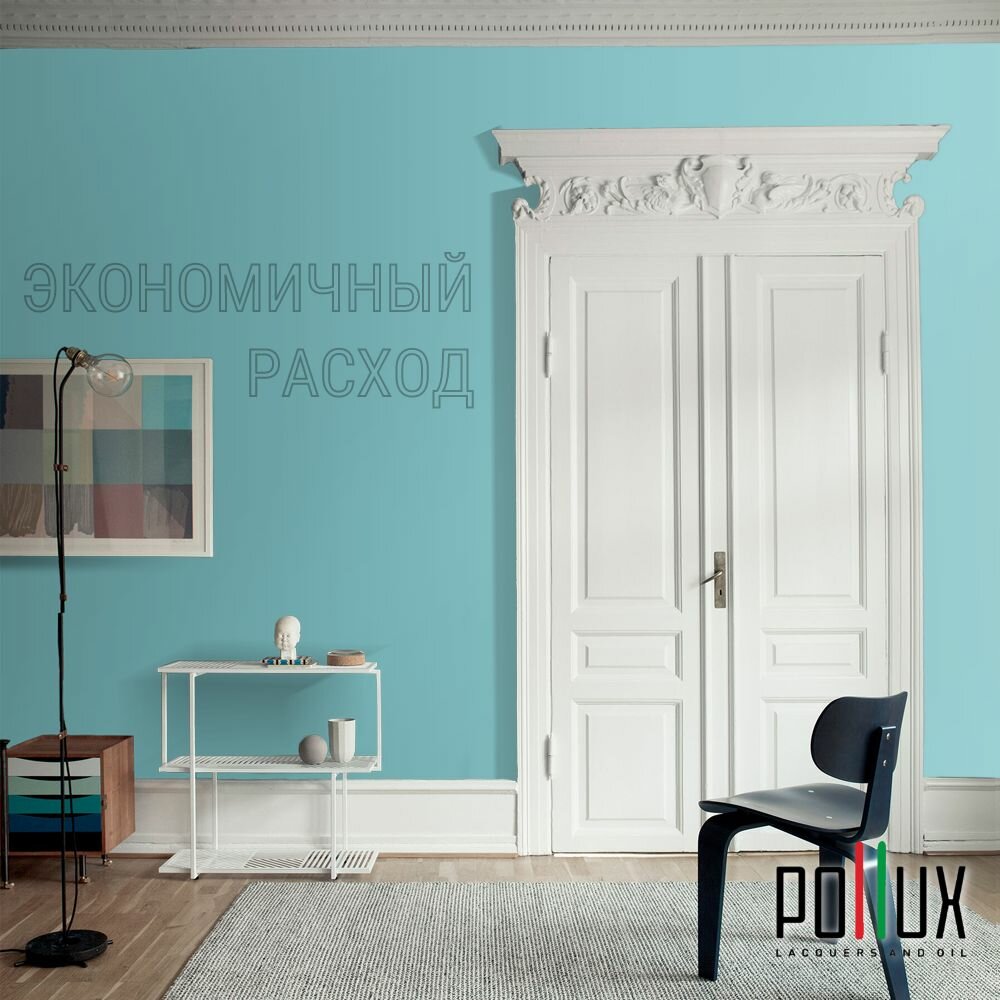 Краска моющаяся интерьерная для стен и потолков, Pollux INTERIOR без запаха, быстросохнущая, акриловая, матовое покрытие, цвет NCS S 1030-B30G, 1л.