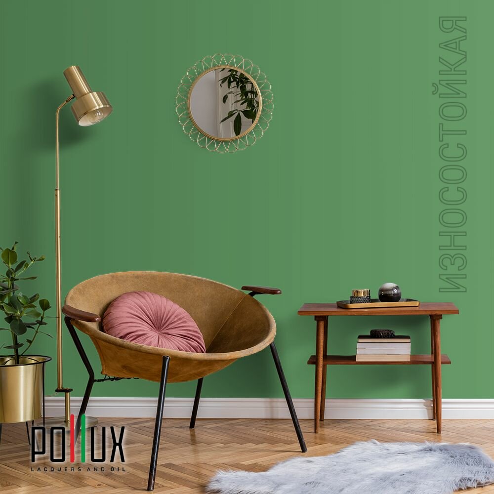 Краска моющаяся интерьерная для стен и потолков, Pollux INTERIOR без запаха, быстросохнущая, акриловая, матовое покрытие, цвет NCS S 6005-G20Y, 1л.