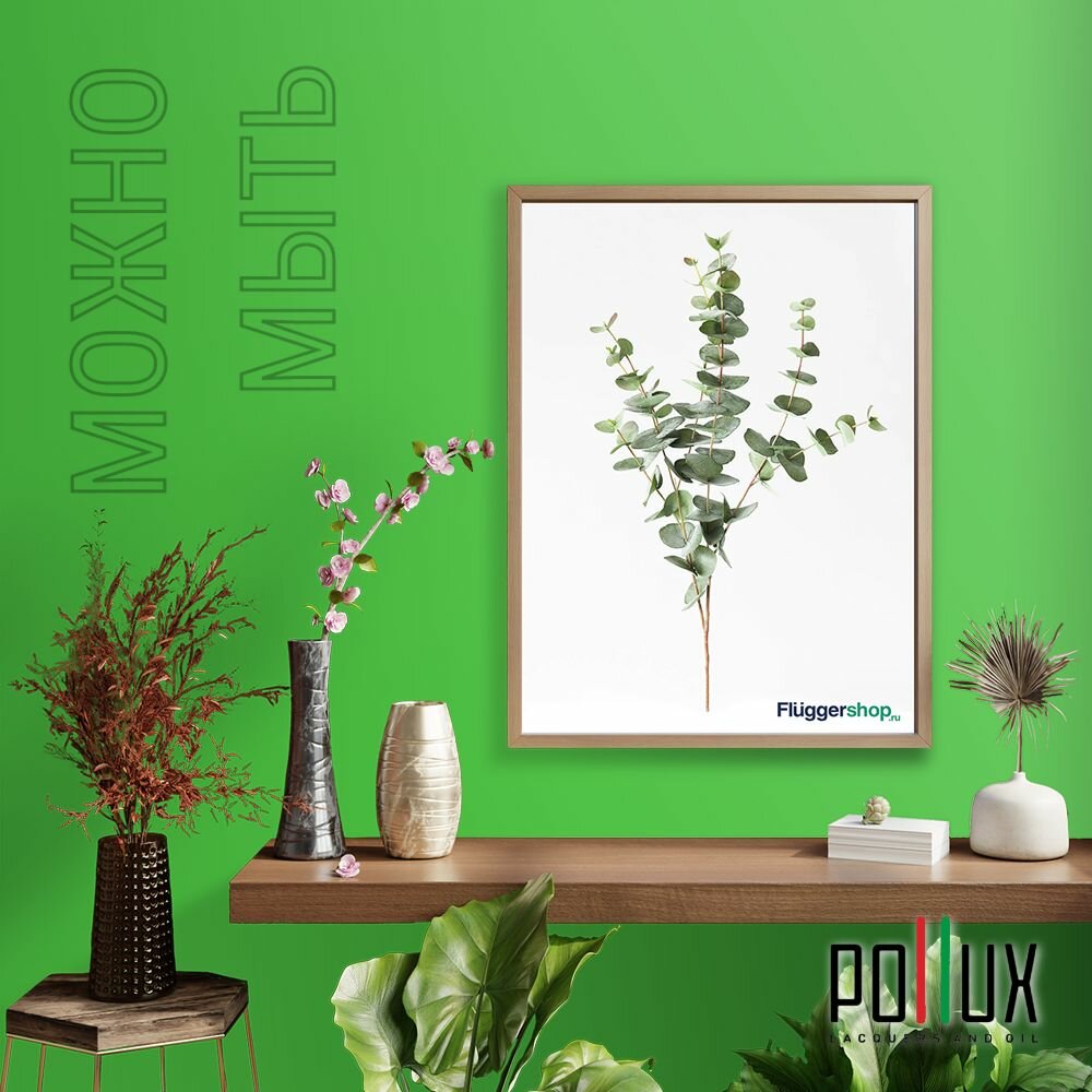 Краска моющаяся интерьерная для стен и потолков, Pollux INTERIOR без запаха, быстросохнущая, акриловая, матовое покрытие, цвет NCS S 3060-G20Y, 1л.