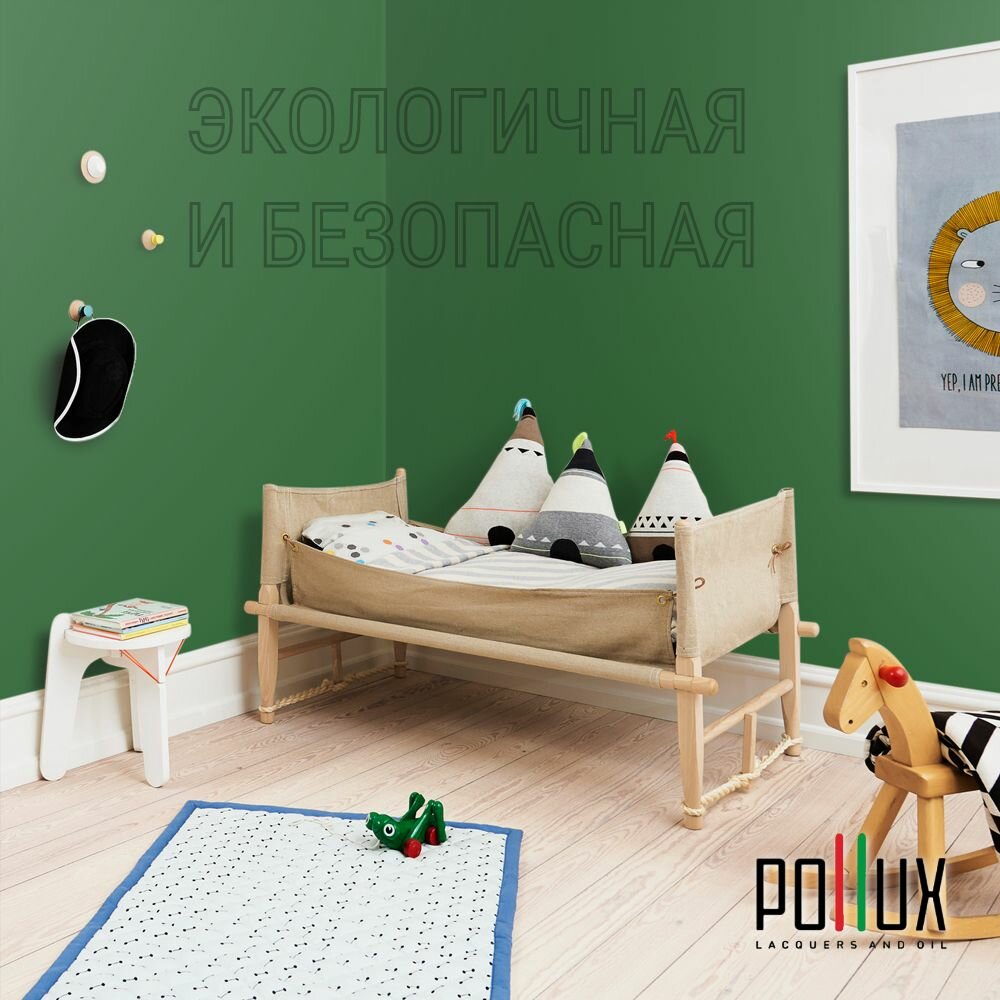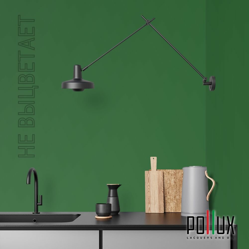 Краска моющаяся интерьерная для стен и потолков, Pollux INTERIOR без запаха, быстросохнущая, акриловая, матовое покрытие, цвет NCS S 4050-G20Y, 1л.