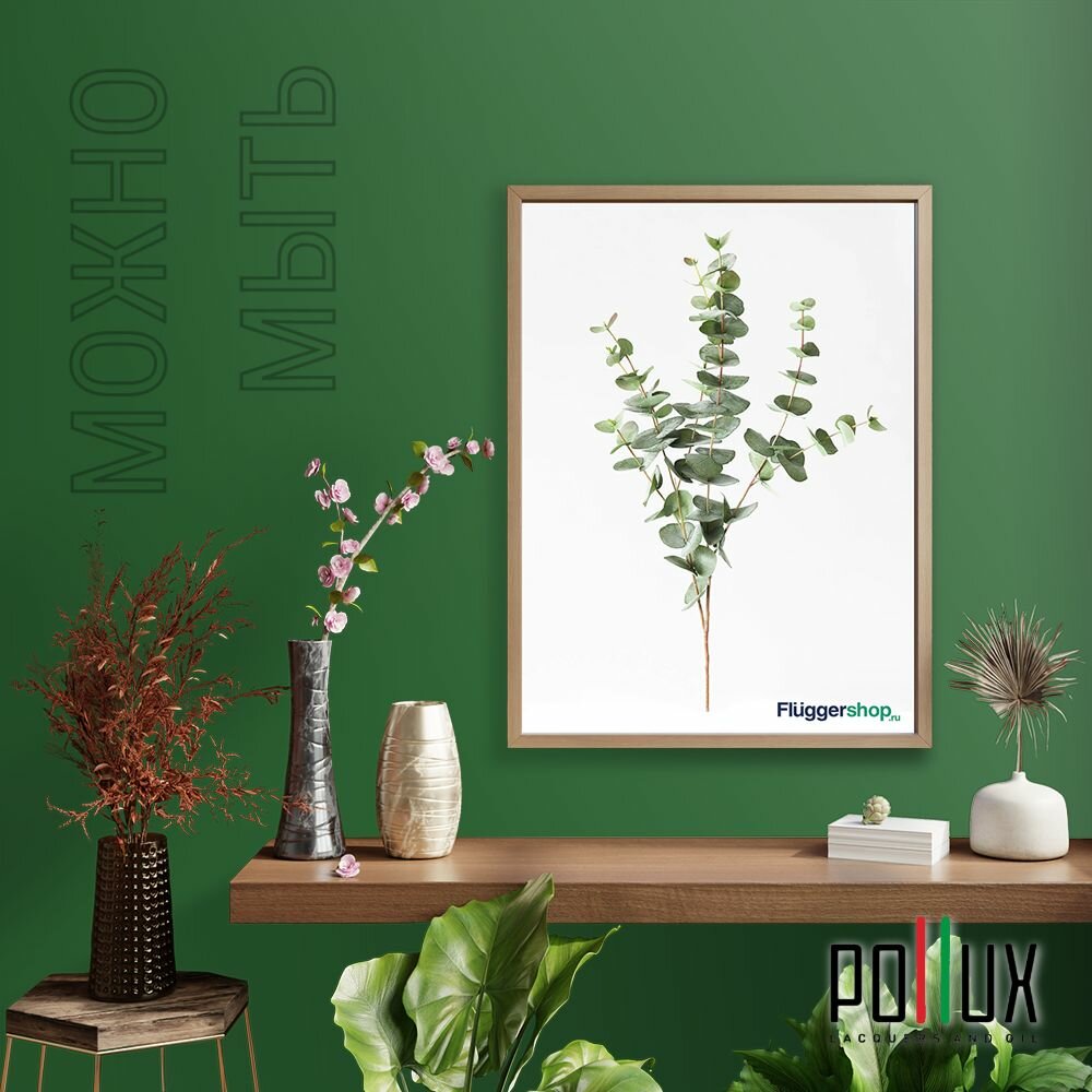 Краска моющаяся интерьерная для стен и потолков, Pollux INTERIOR без запаха, быстросохнущая, акриловая, матовое покрытие, цвет NCS S 6005-G20Y, 1л.