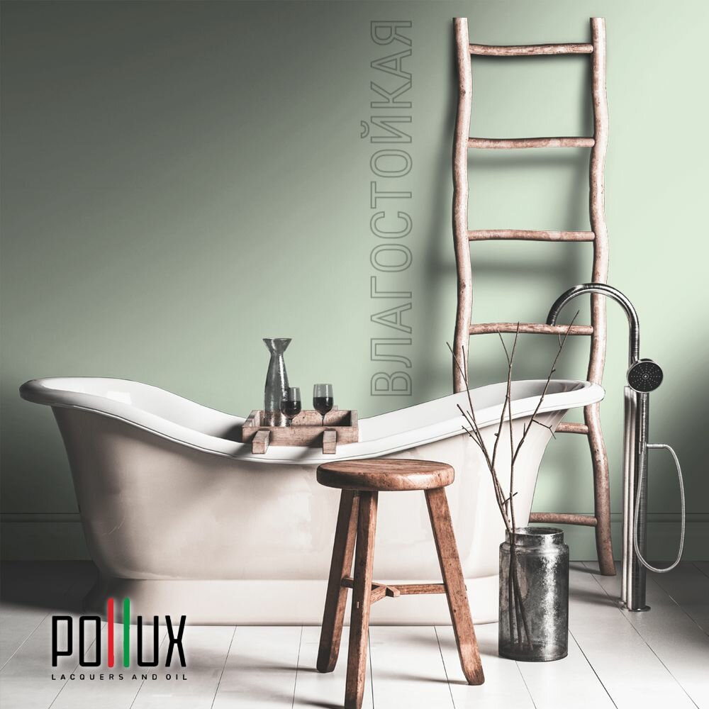 Краска моющаяся интерьерная для стен и потолков, Pollux INTERIOR без запаха, быстросохнущая, акриловая, матовое покрытие, цвет NCS S 2075-G20Y, 1л.