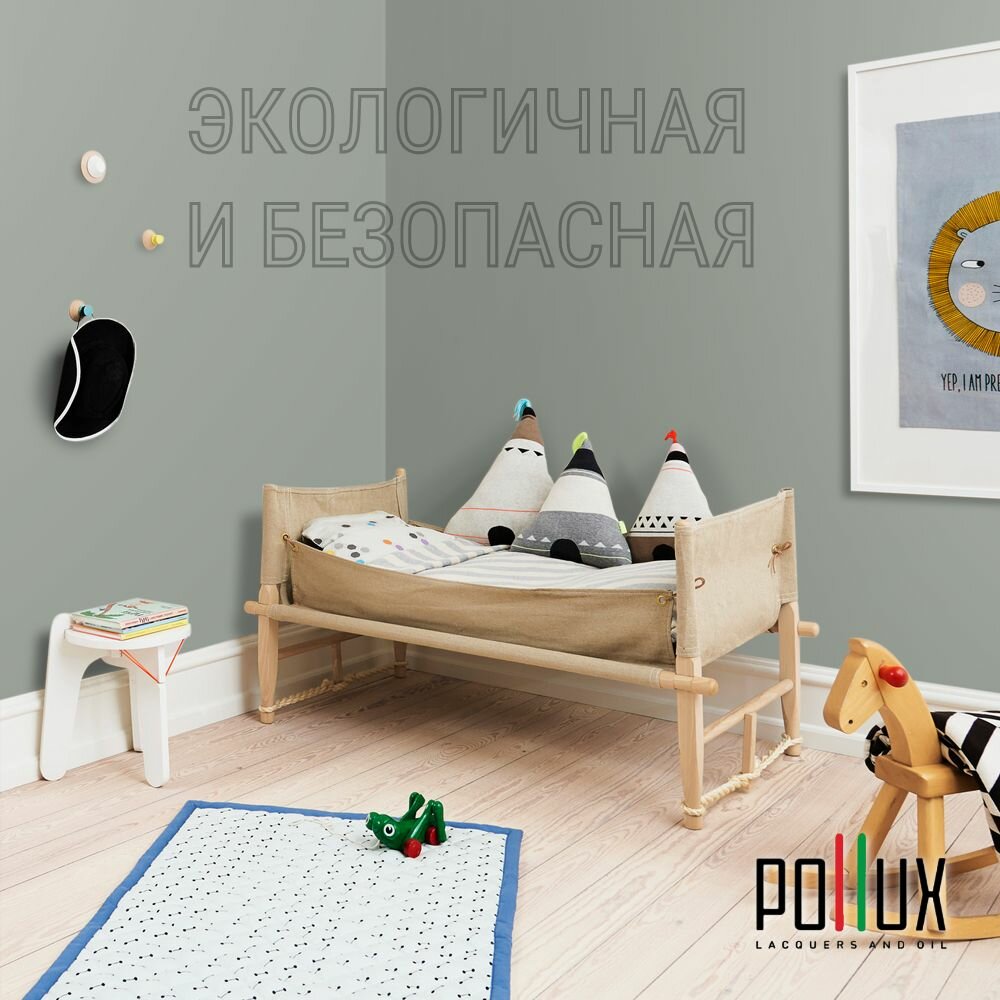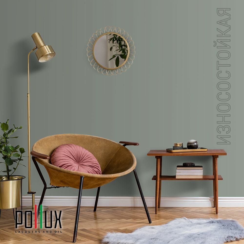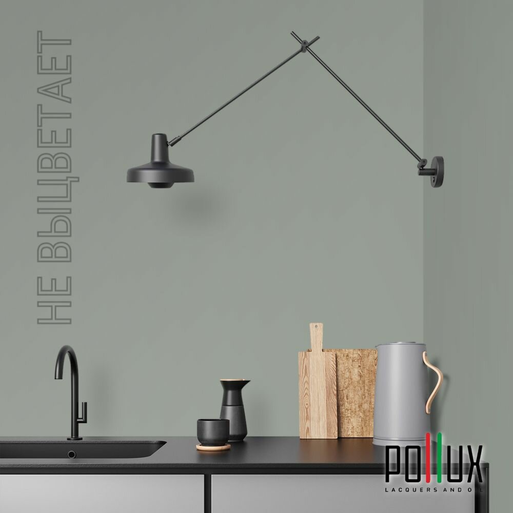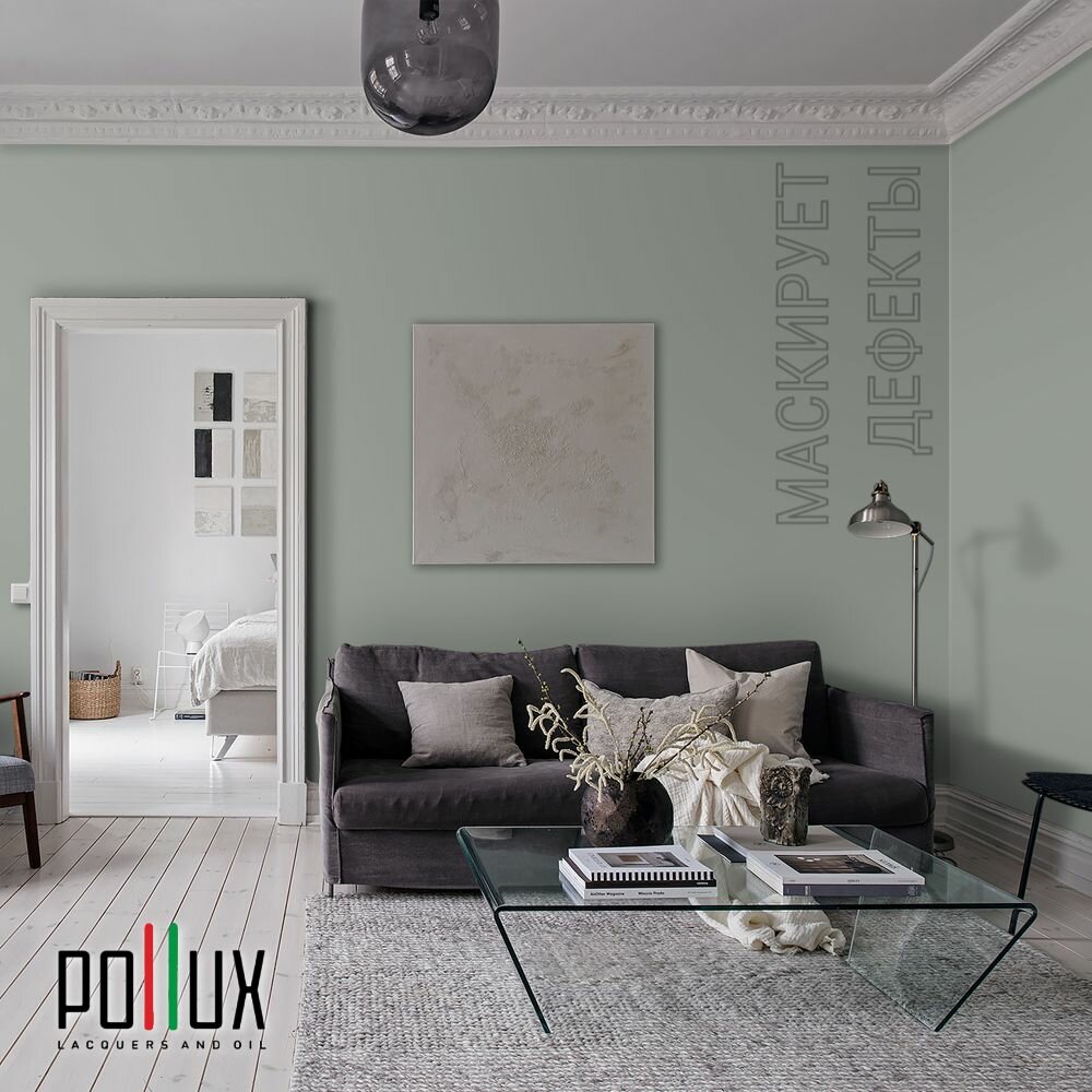 Краска моющаяся интерьерная для стен и потолков, Pollux INTERIOR без запаха, быстросохнущая, акриловая, матовое покрытие, цвет NCS S 4050-G20Y, 1л.