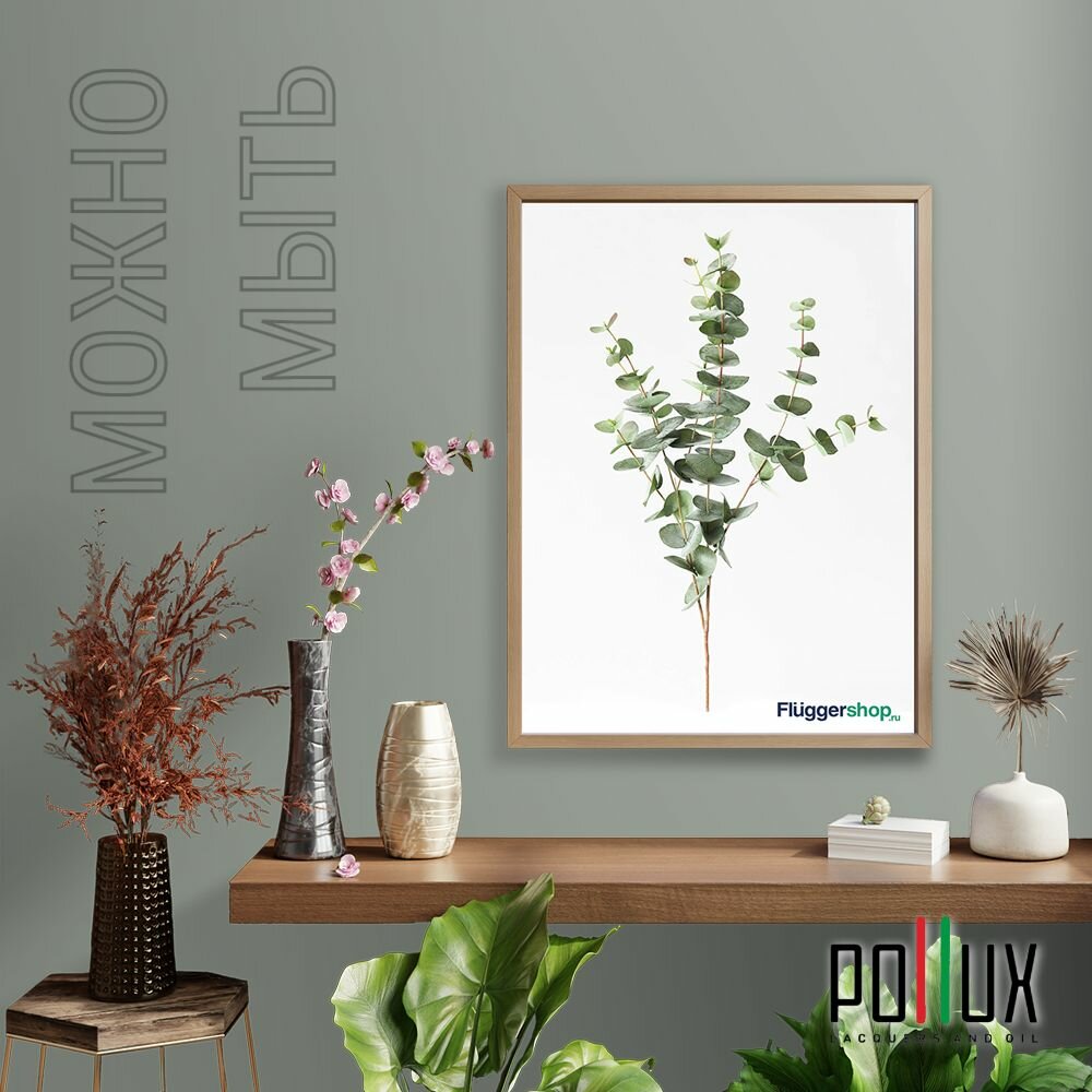 Краска моющаяся интерьерная для стен и потолков, Pollux INTERIOR без запаха, быстросохнущая, акриловая, матовое покрытие, цвет NCS S 7005-G20Y, 1л.