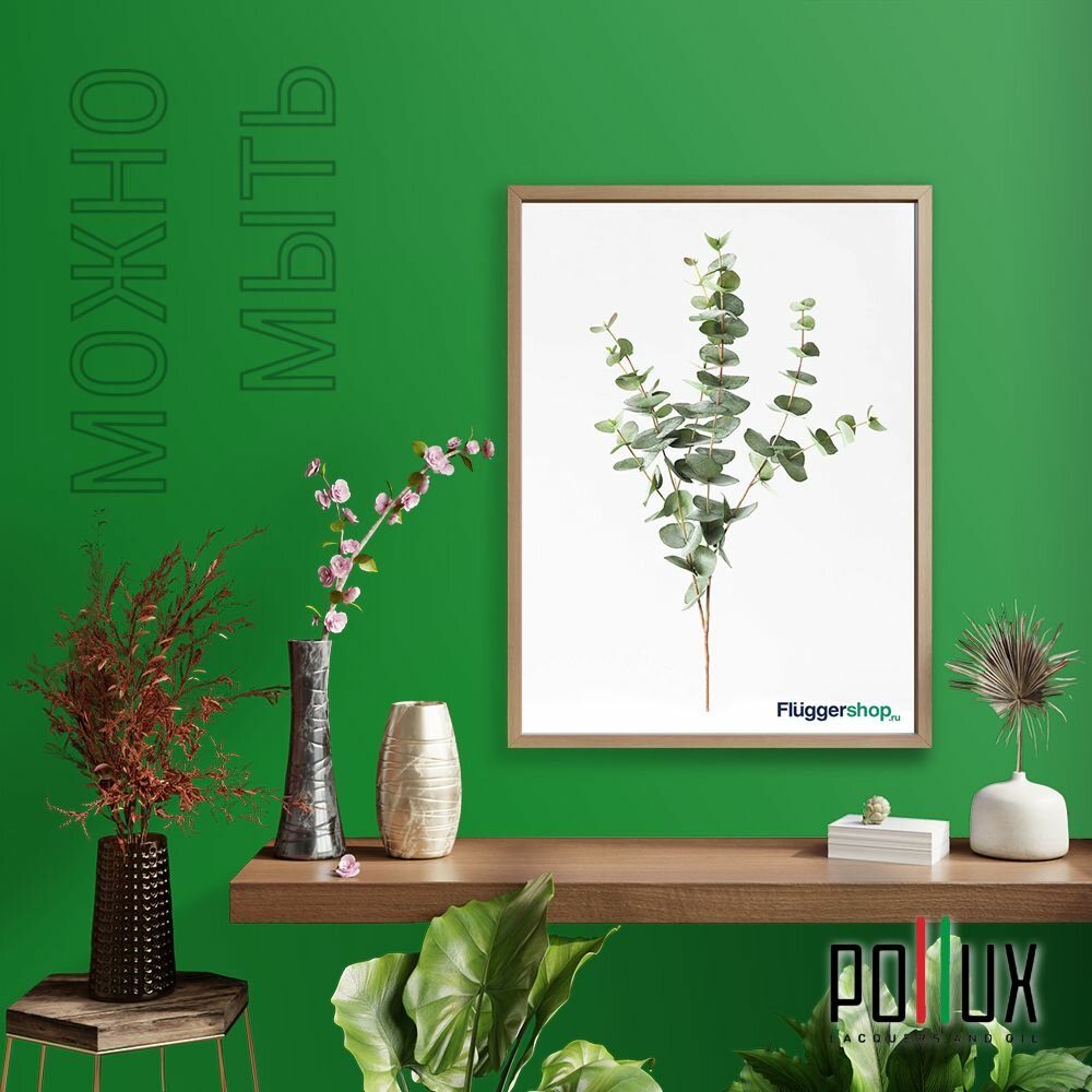 Краска моющаяся интерьерная для стен и потолков, Pollux INTERIOR без запаха, быстросохнущая, акриловая, матовое покрытие, цвет NCS S 4050-G20Y, 1л.