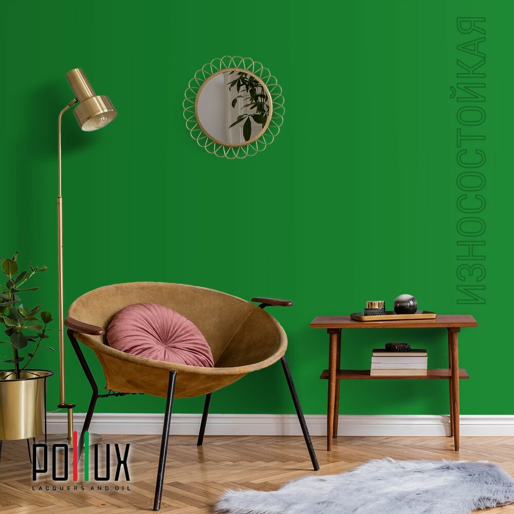 Краска моющаяся интерьерная для стен и потолков, Pollux INTERIOR без запаха, быстросохнущая, акриловая, матовое покрытие, цвет NCS S 6005-G20Y, 1л.